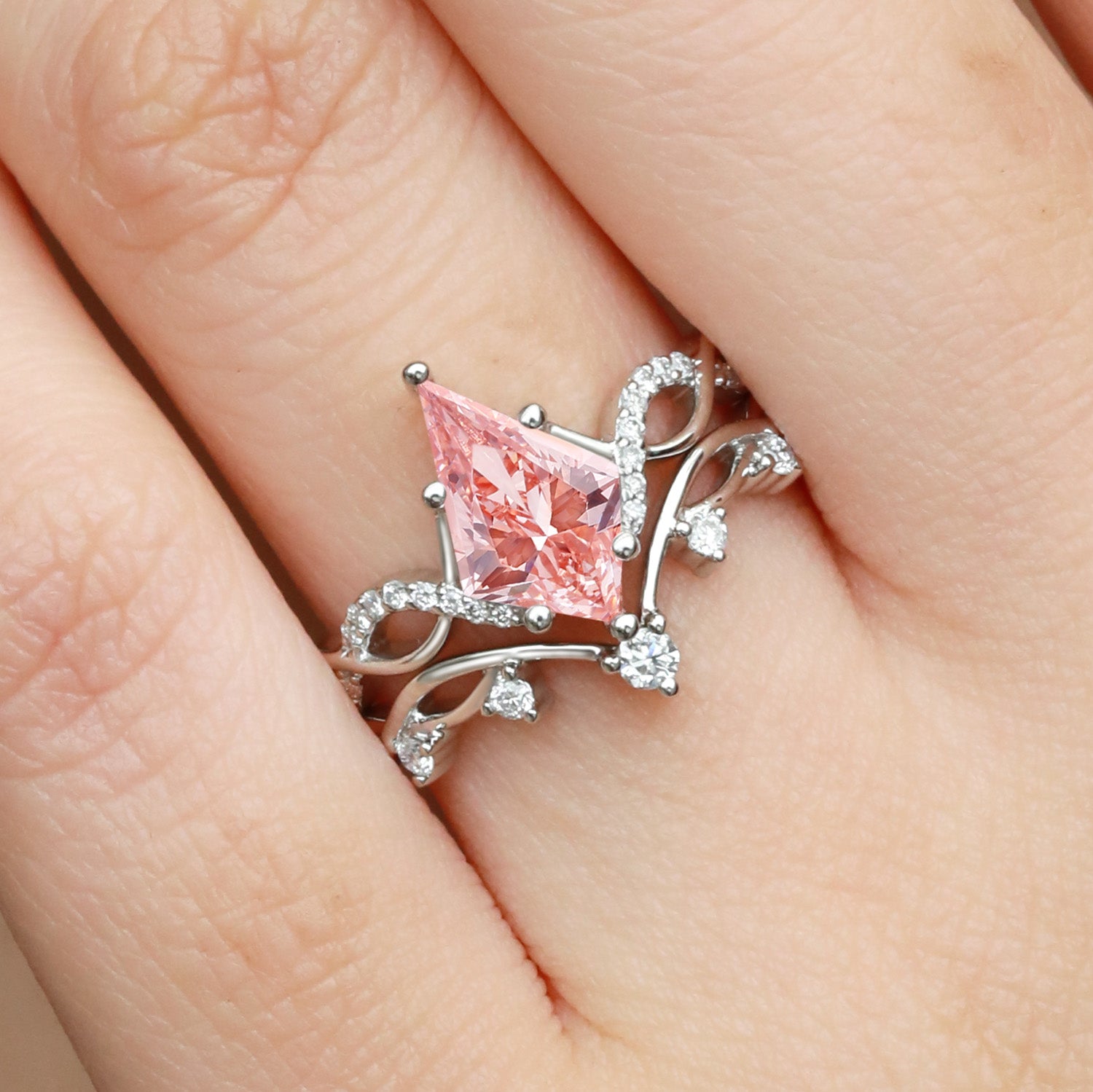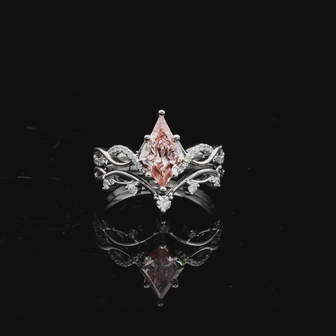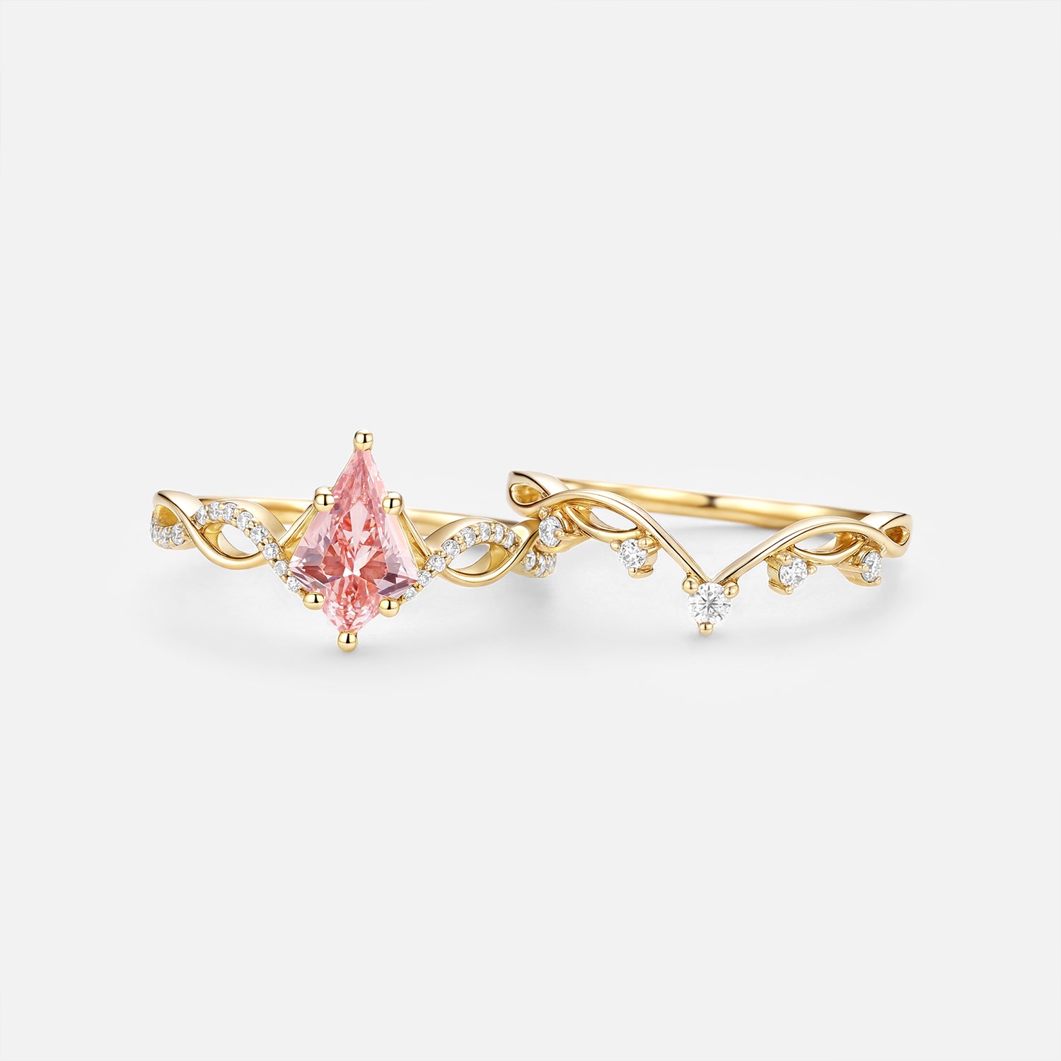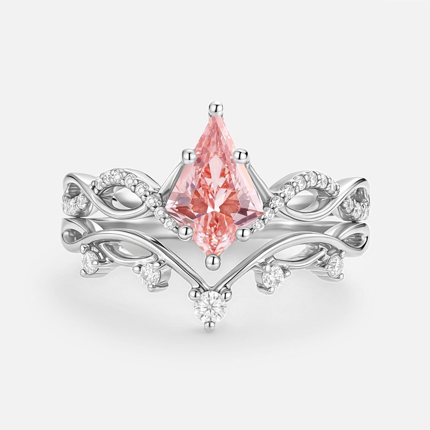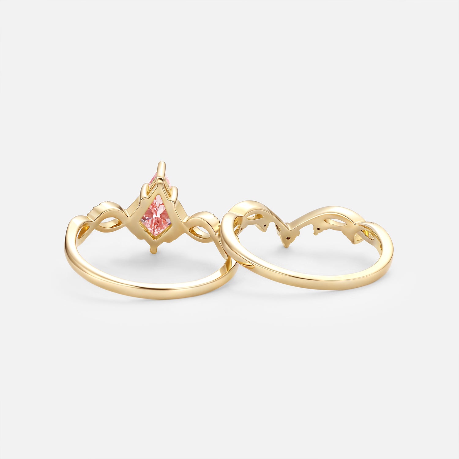 Leafy Kite Pink Lab Grown Diamond Ring Set 2pcs - Phyllon