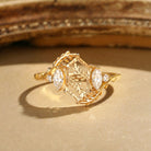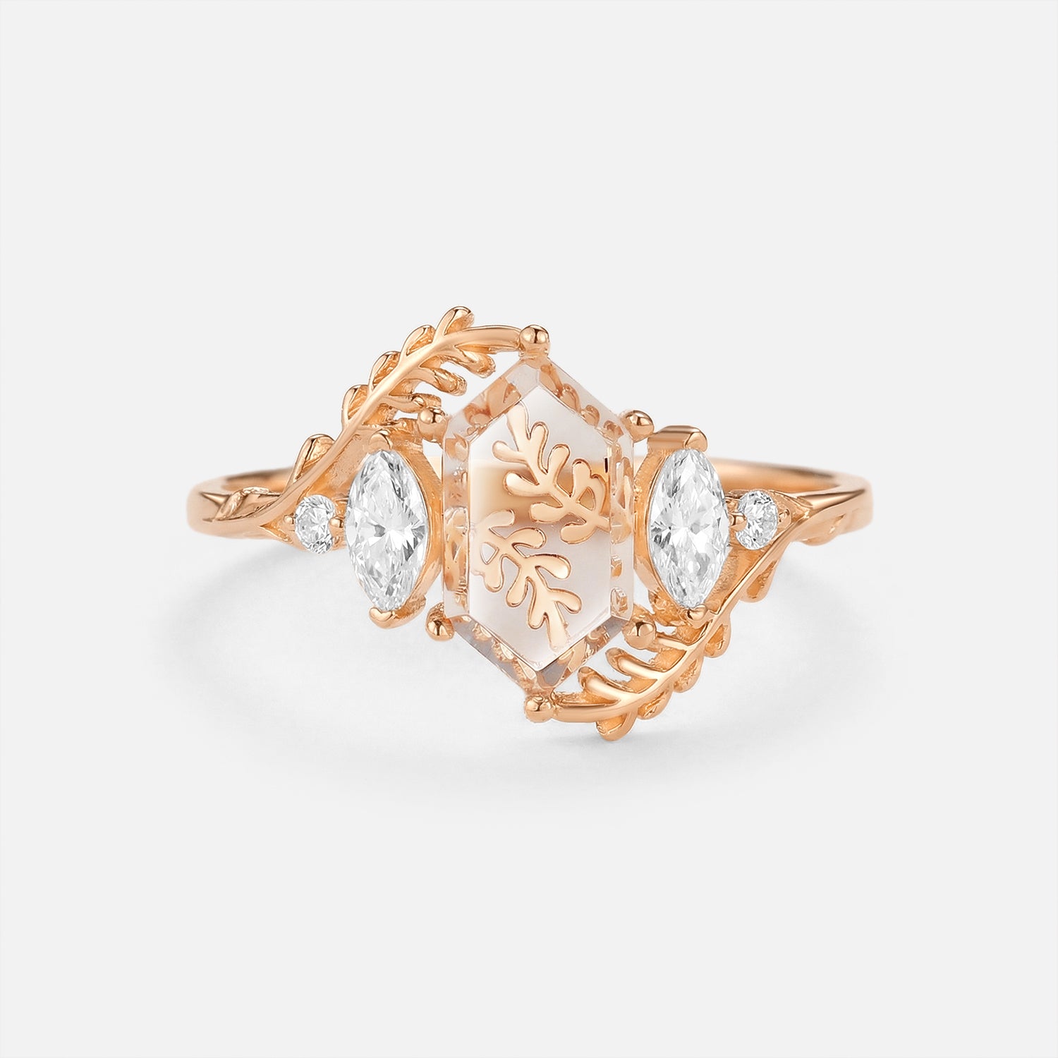 Leafy Moissanite Portrait Cut Elongated Hexagon Engagement Ring - Atrium