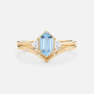 Long Hexagon Aquamarine Engraved Bridal Ring Set 2pcs - Vega