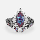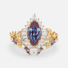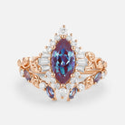Marquise Cut Lab Alexandrite Leafy Engagement Ring Sets 2pcs - Thorn