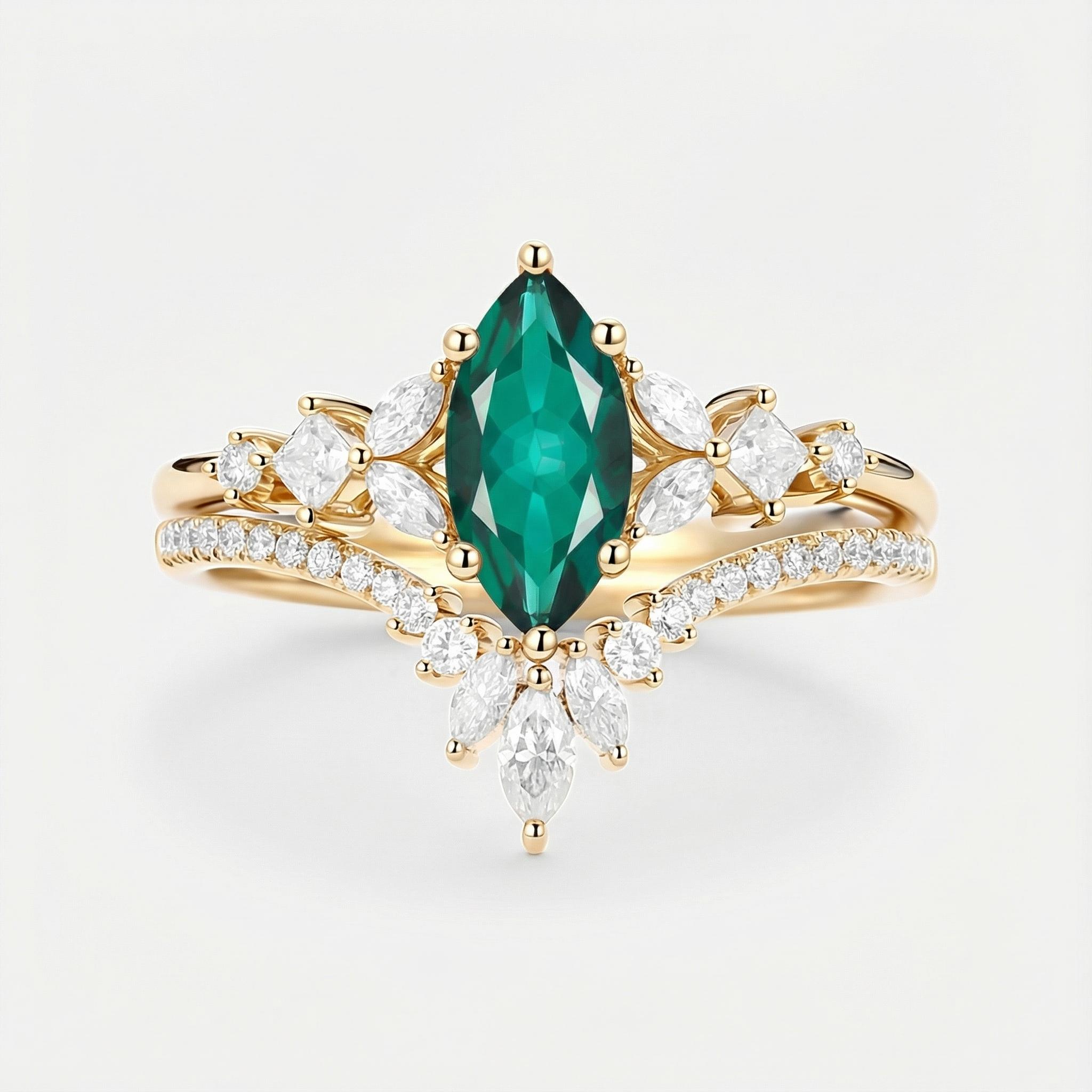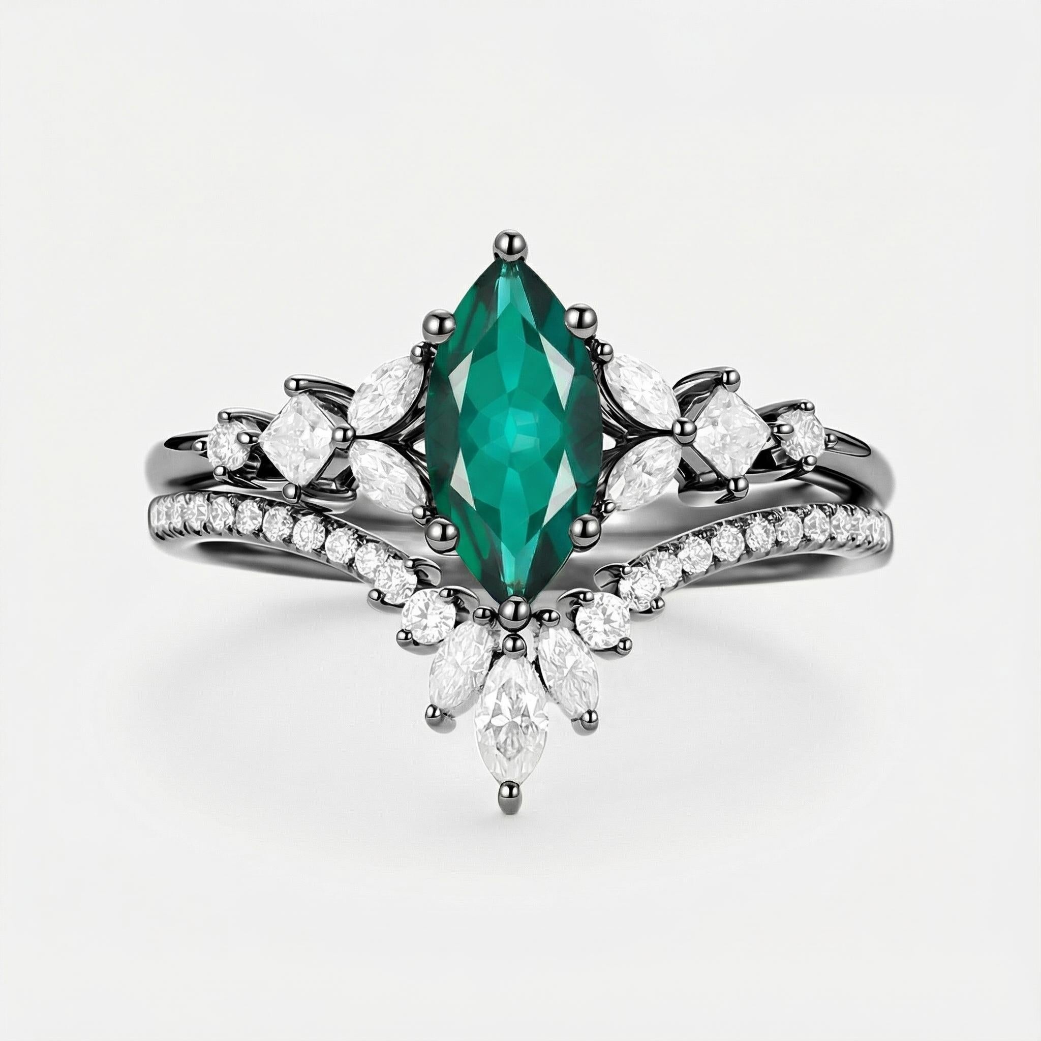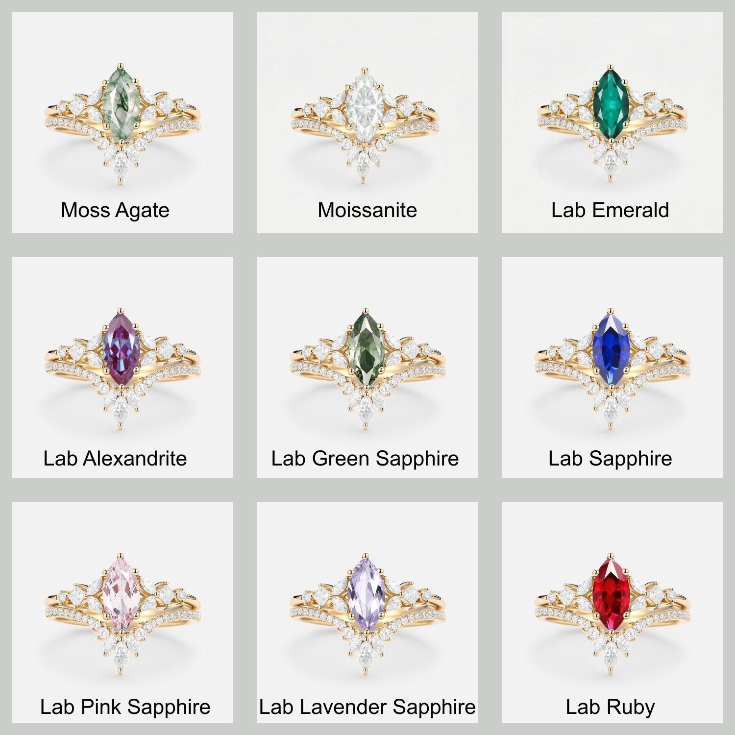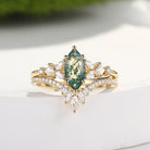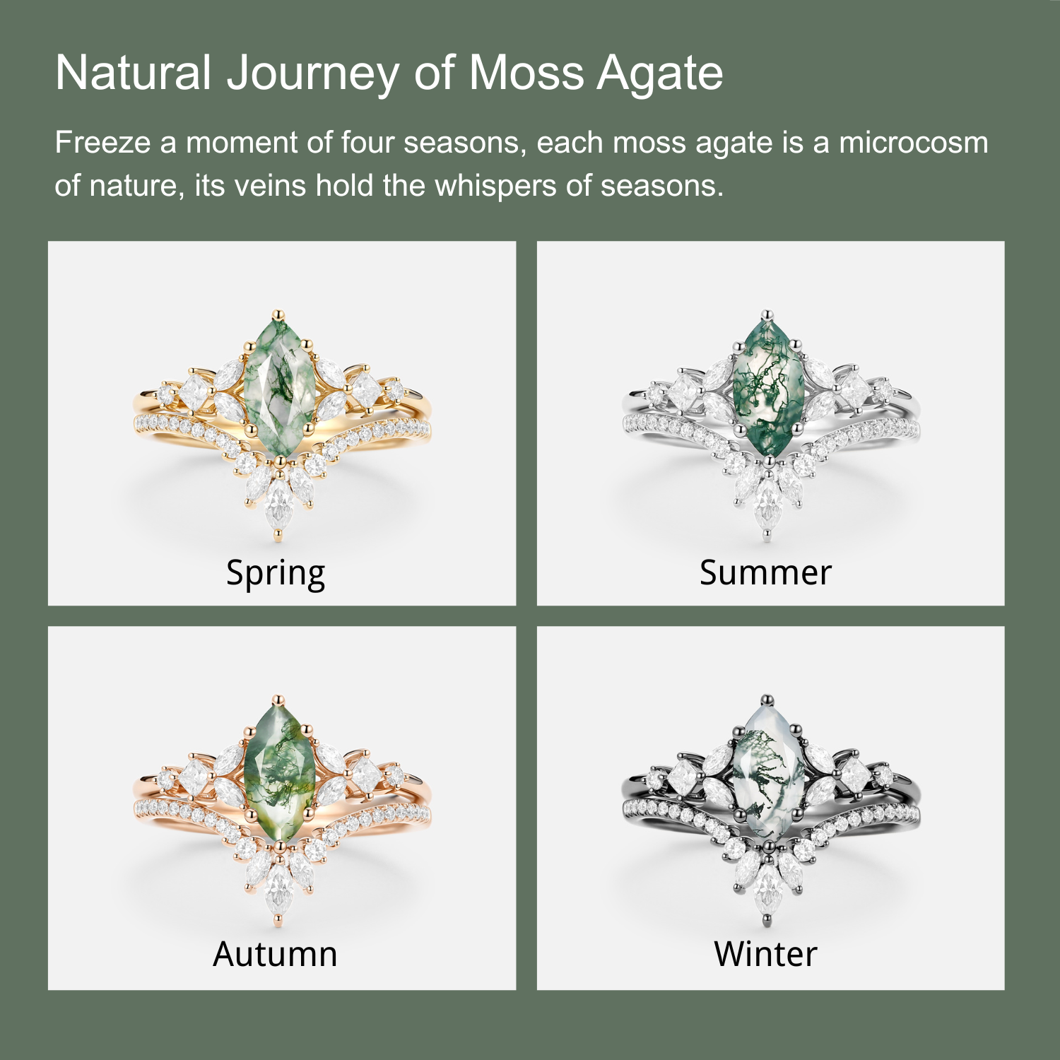 Marquise Cut Moss Agate Cluster Engagement Ring Set 2pcs - Lumenis