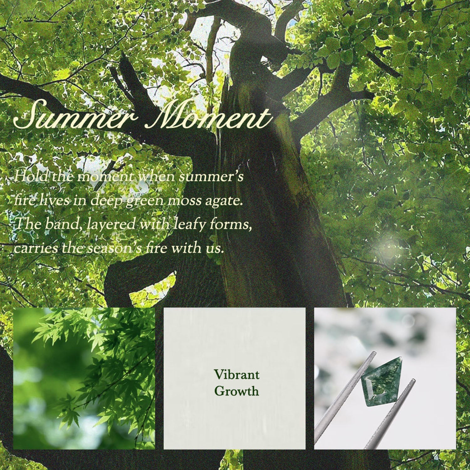 Each unique Moss Agate stone is reminiscent of a misty forest, with green, branch-like inclusions creating captivating visual appeal. See more moss agate rings.