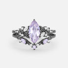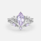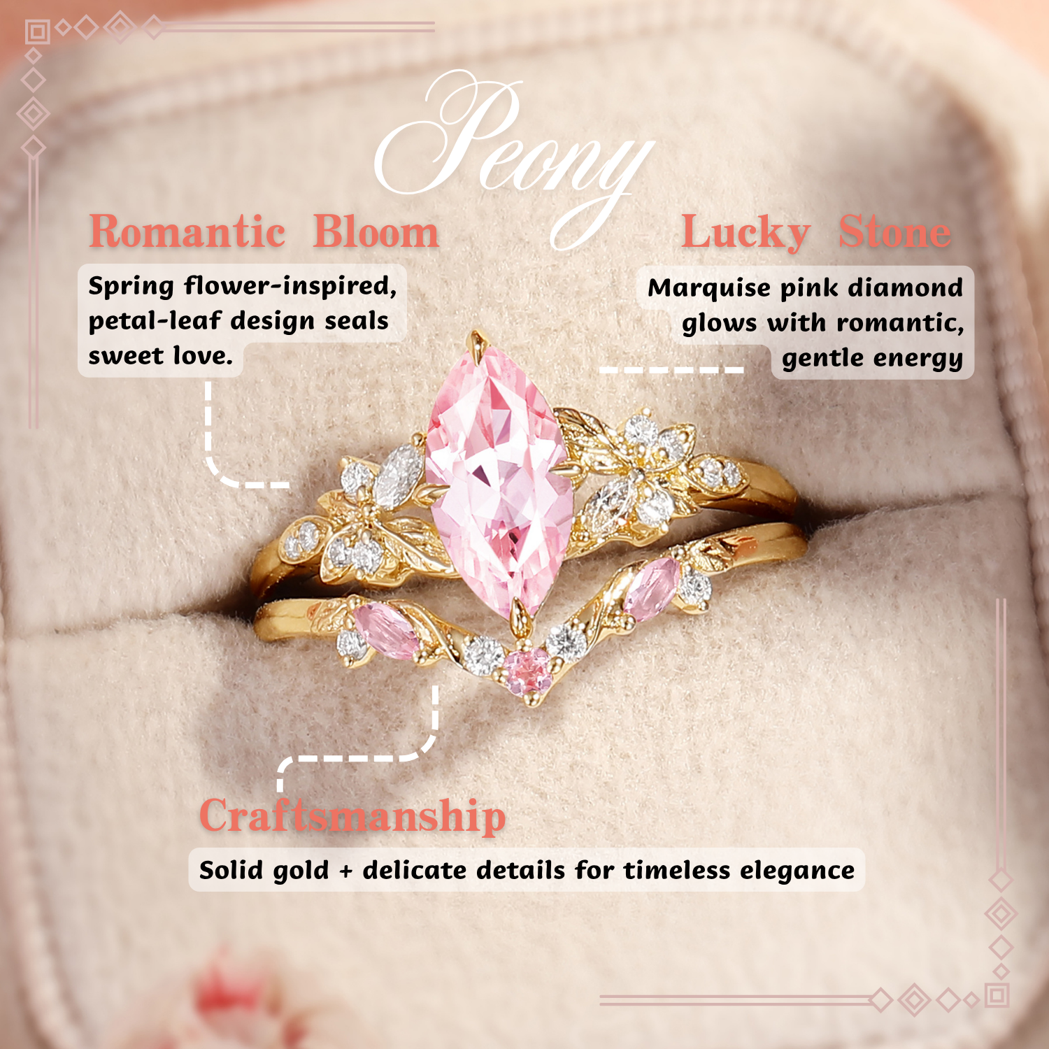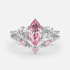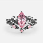 Marquise Lab Pink Sapphire Leafy Engagement Ring Sets 2pcs - Peony
