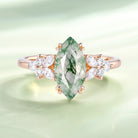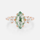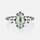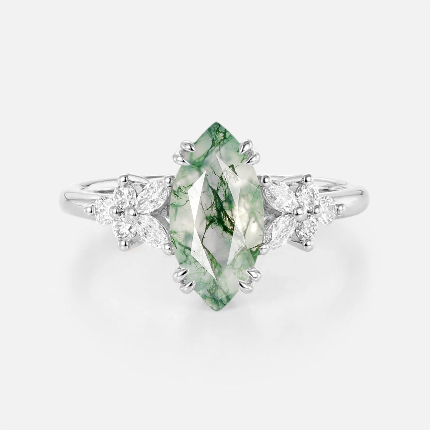 Marquise Moss Agate Leafy Vintage Engagement Ring - Arbor