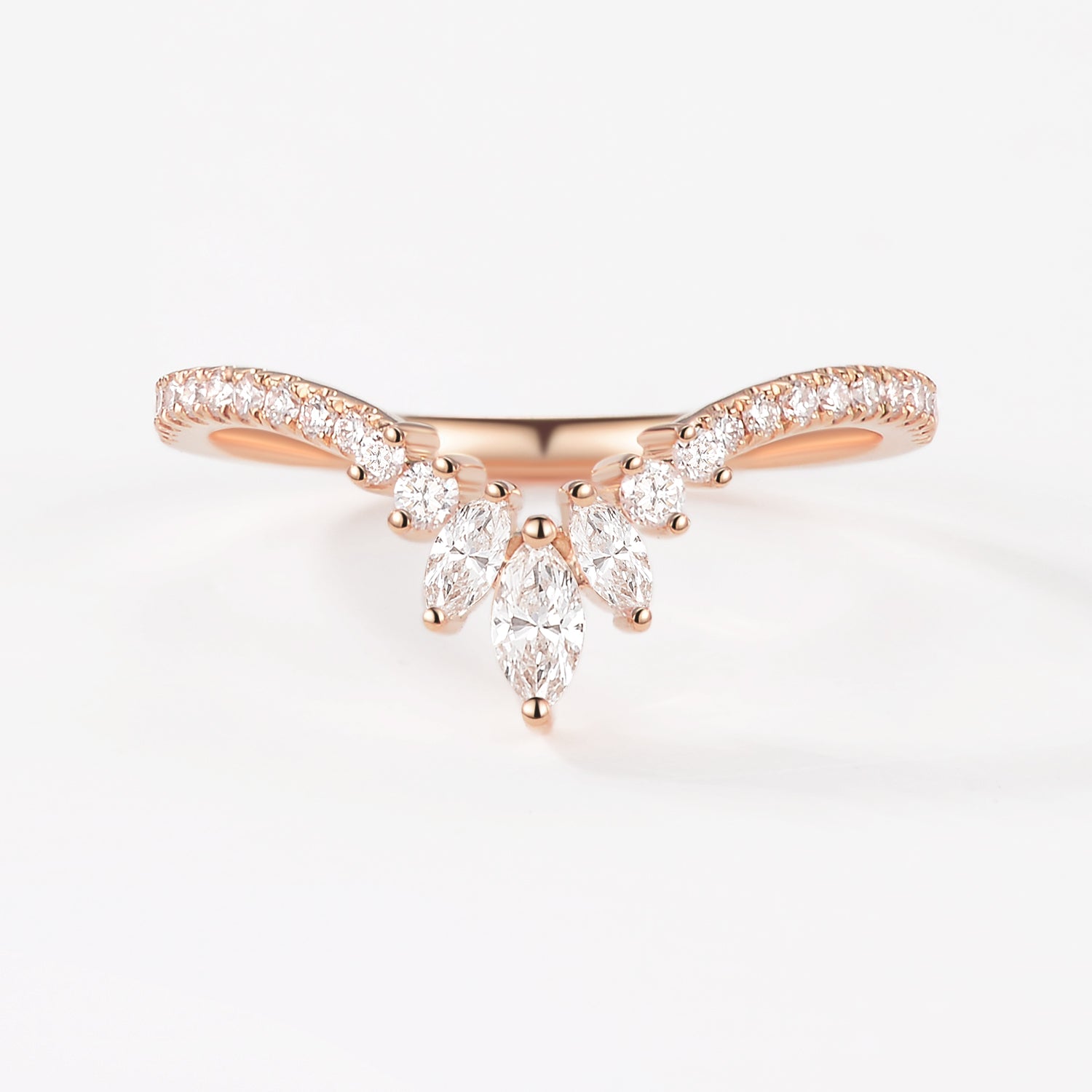 Felicegals Moissanite Stacking Curved Custom Ring Moissanite Wedding Band Rose Gold Ring Custom Marquise Moissanite Wedding Ring