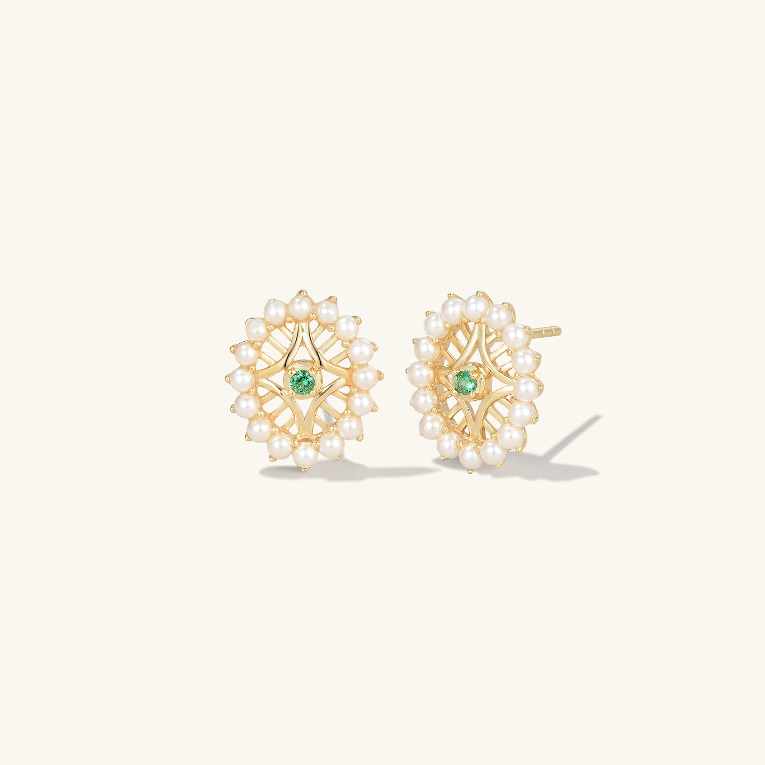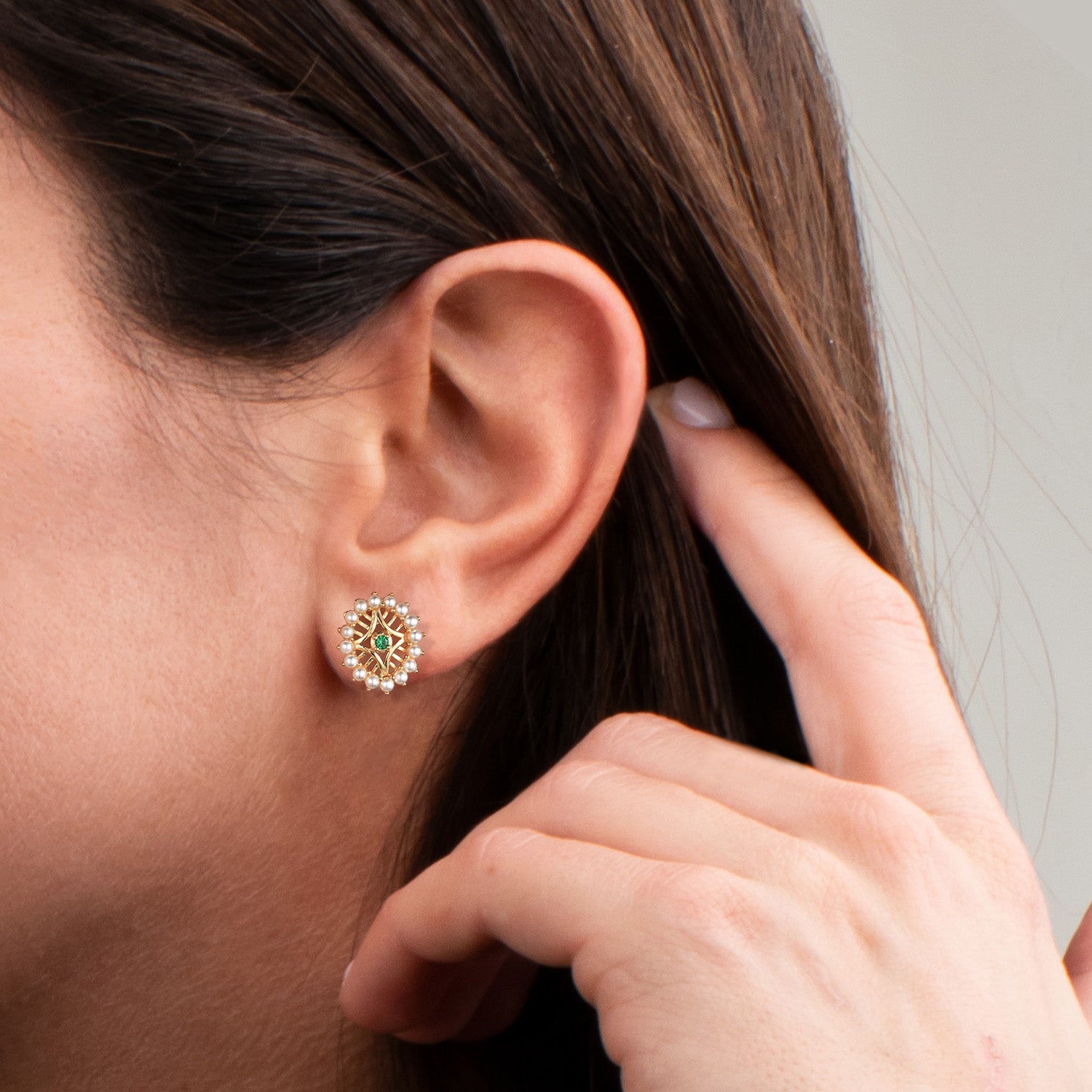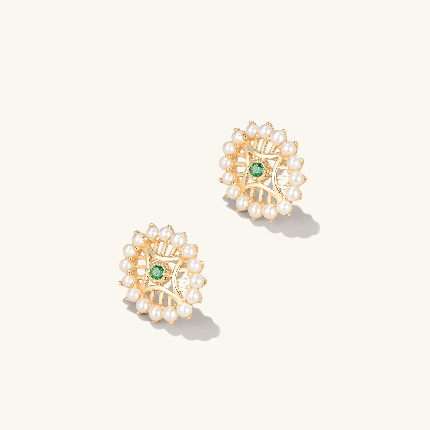 Natural Emerald & Pearl Vintage Inspired Yellow Gold Earrings