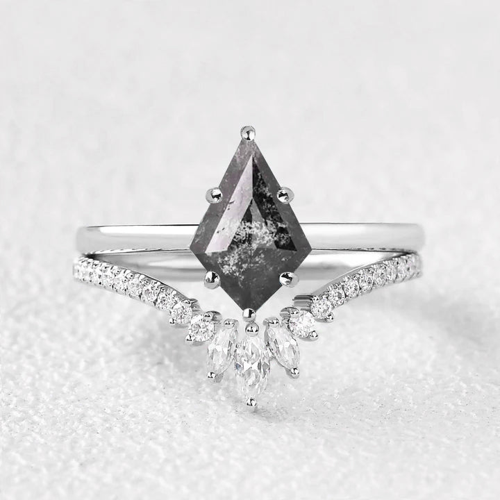 Felicegals Minimalistic Salt and pepper ring Gift for loved one Diamond engagement ring Contemporary ring Salt and pepper diamond ring Custom kite diamond ring