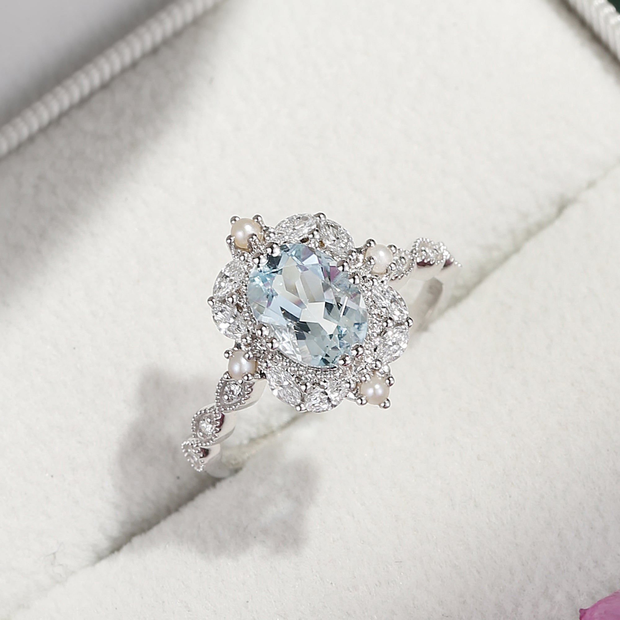 Oval Aquamarine Gold Halo Engagement Ring - Bay