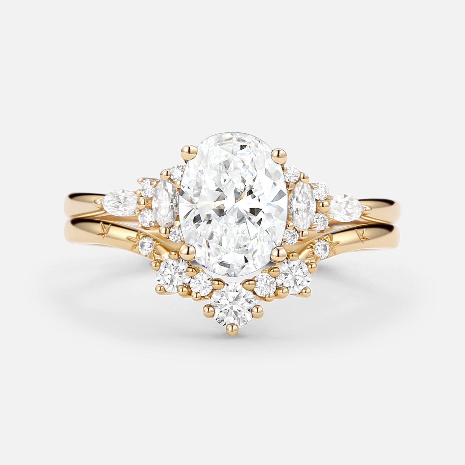 Oval Cut Lab Grown Diamond Engagement Ring Sets 2pcs