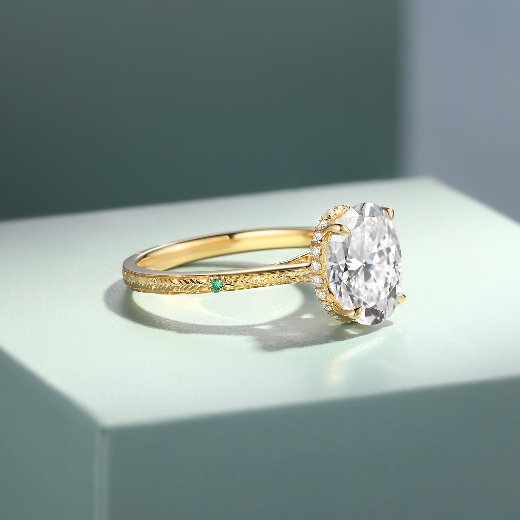 Oval Cut Lab Grown Diamond Engraved Solitaire Engagement Ring - Eirene