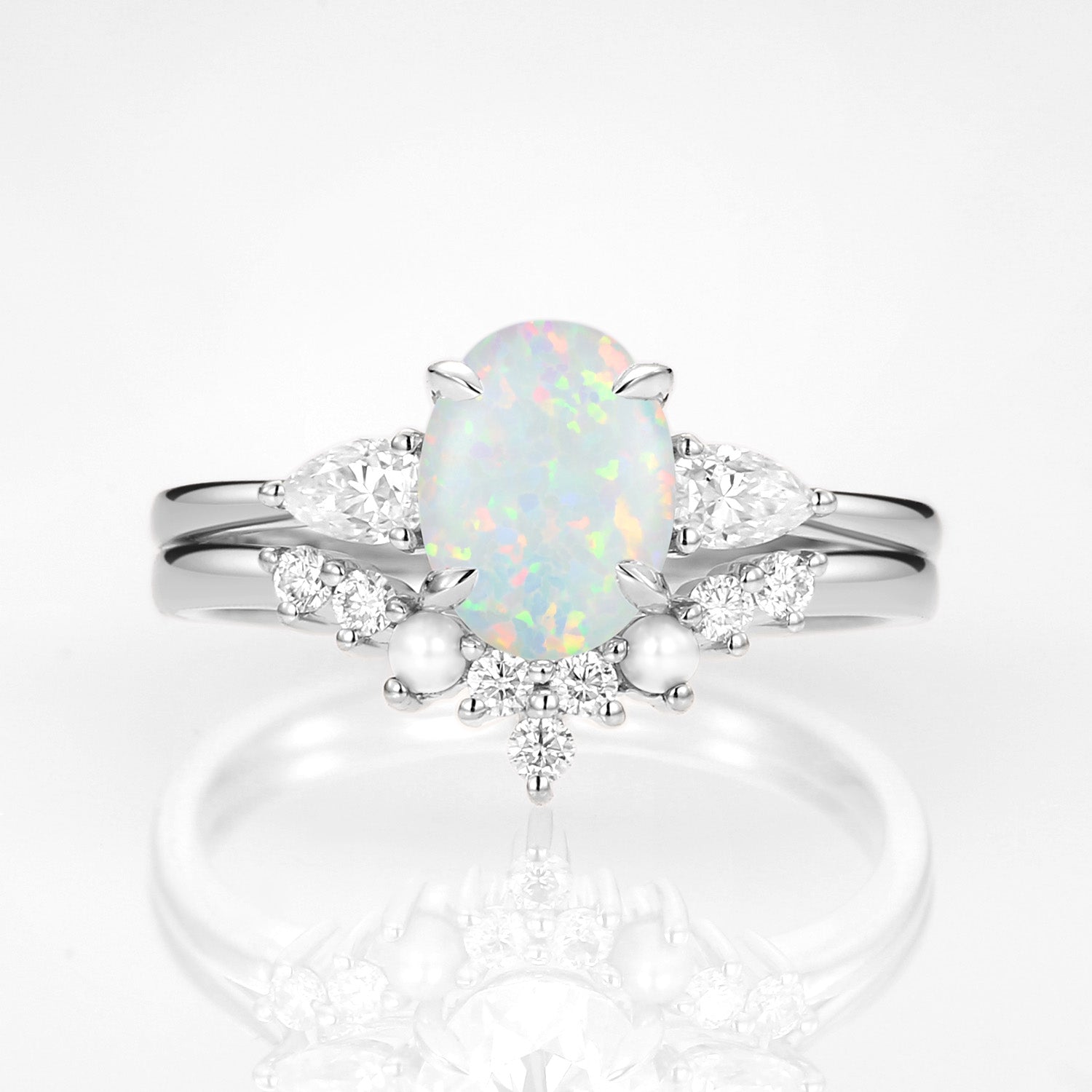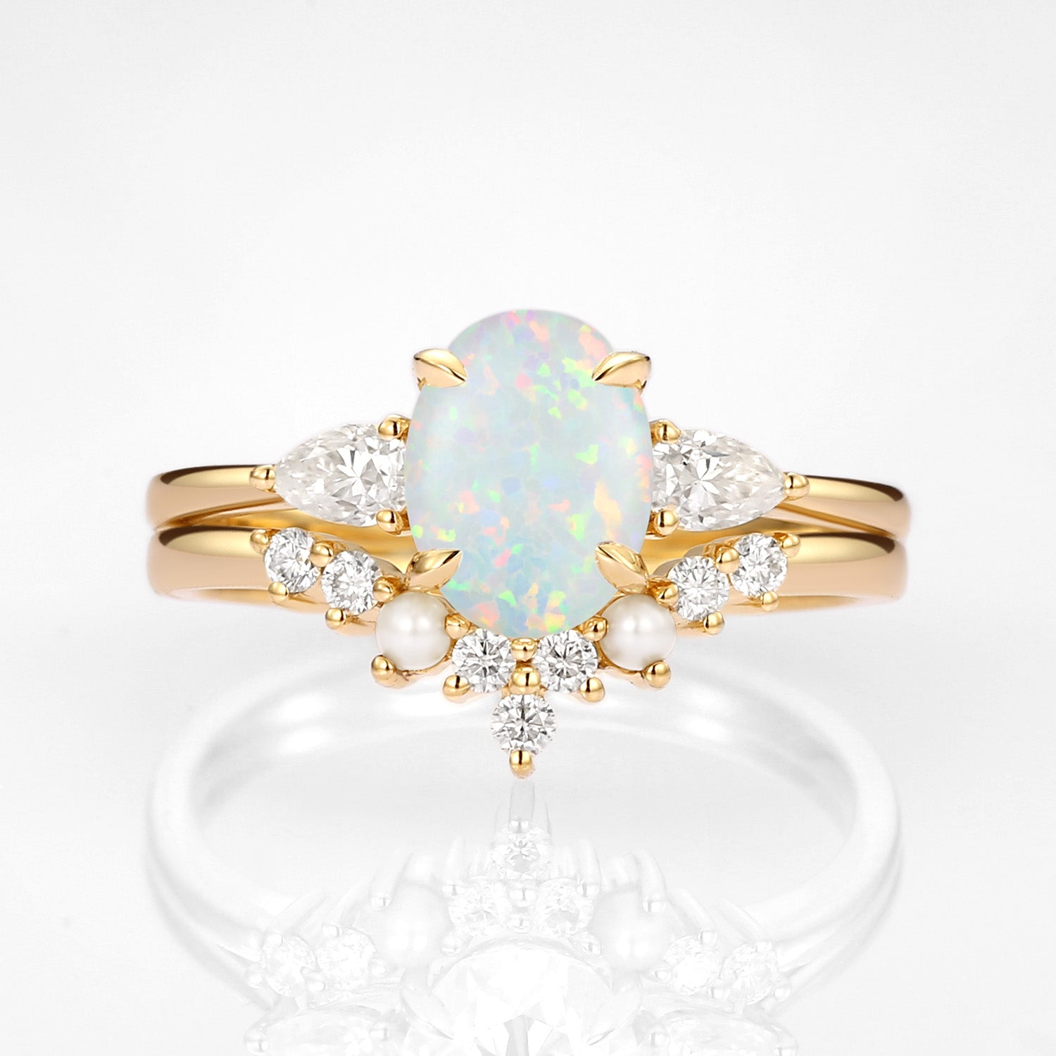 Oval Cut Opal Vintage Ring Set 2pcs - Nancy