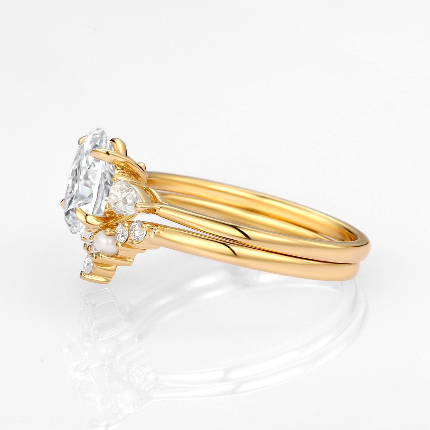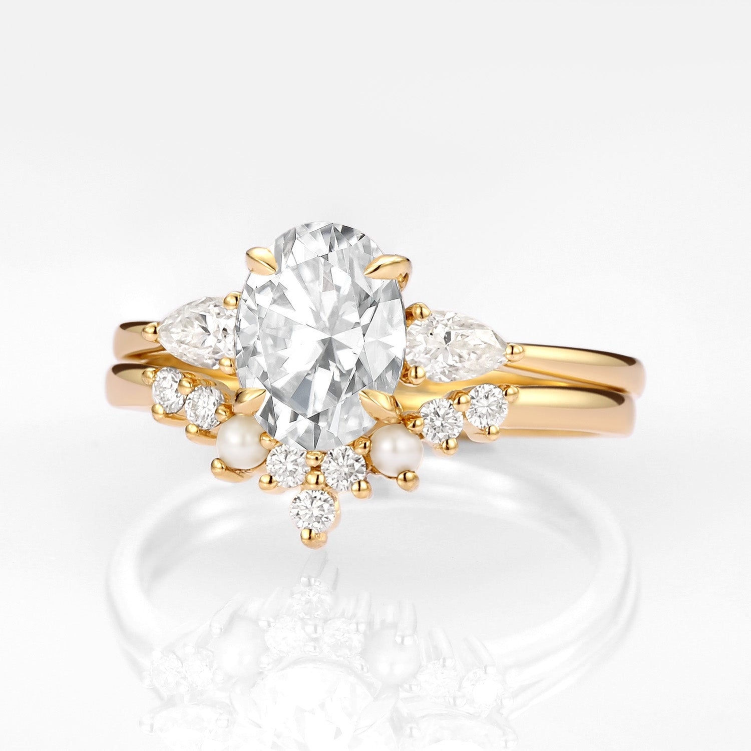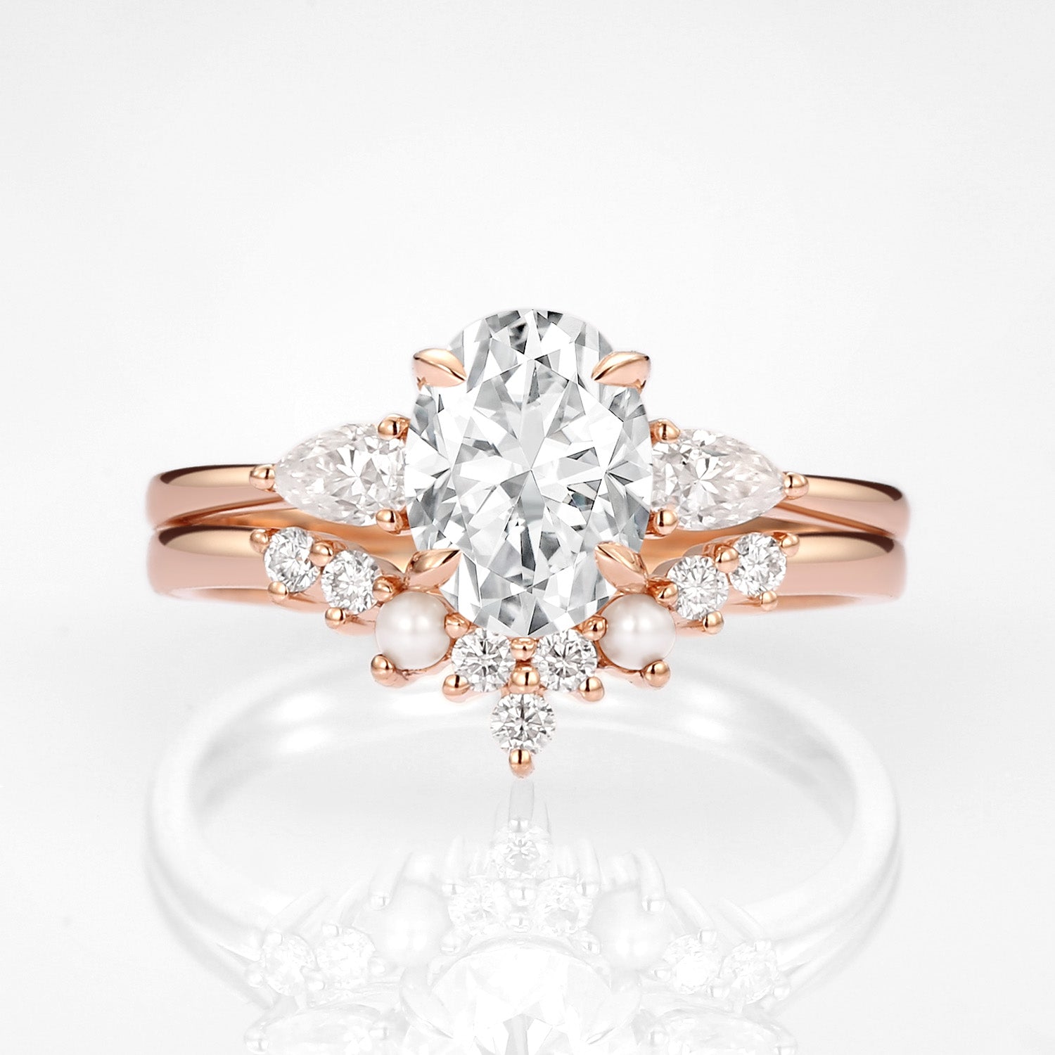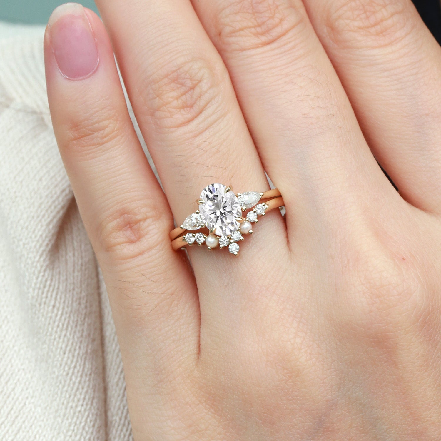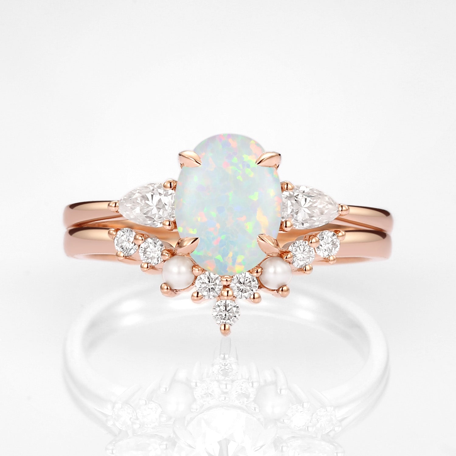 Felicegals Oval Cut Opal Vintage Ring Set 2pcs Rose Gold Pearl Stacking Ring Cluster Ring Gift for her Anniversary Gift Gemstone