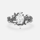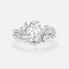 Oval Green Moss Agate Vine Engagement Ring Set 2pcs - Daphne