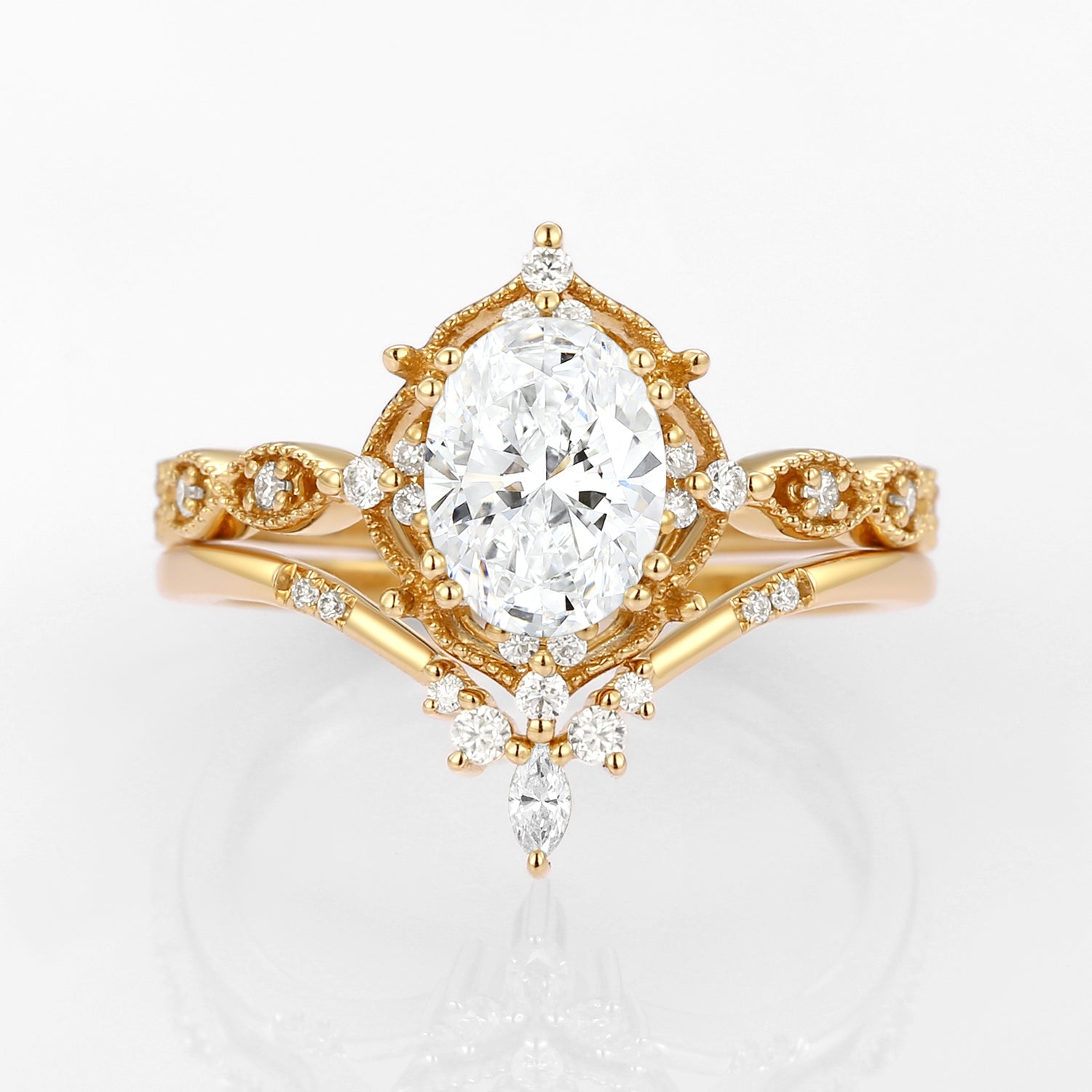 Oval Lab Grown Diamond Vintage Inspired Engagement Ring Set 2pcs