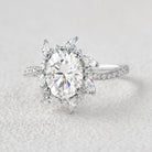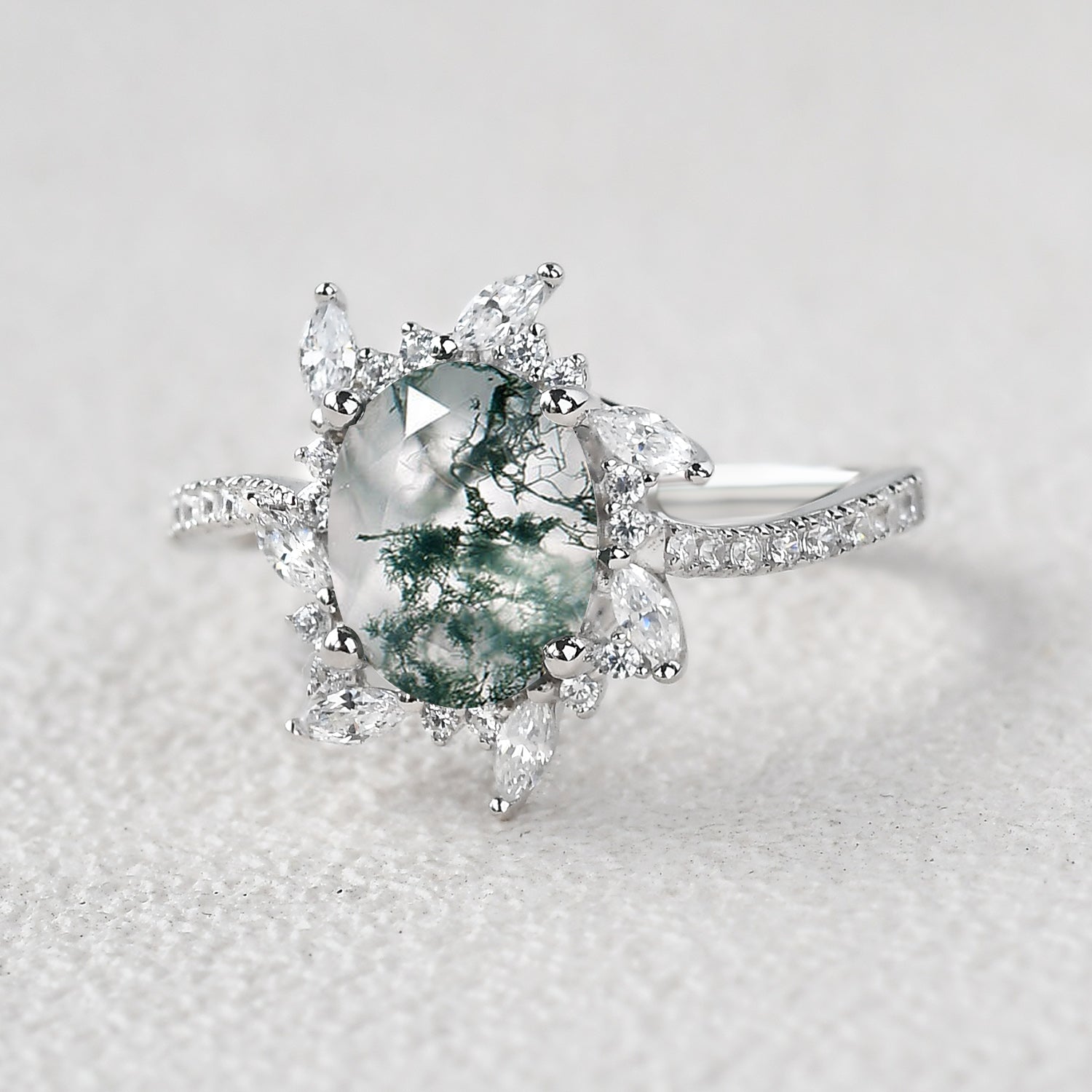 Felicegals Unique Windmills Oval 6*8mm Moss Agate Engagement Ring 0.34ct Moissanite Accents Sun White Gold Ring Classic Bridal Ring Anniversary Gift For Her