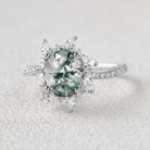 Oval Moss Agate & Moissanite Halo White Gold Engagement Ring