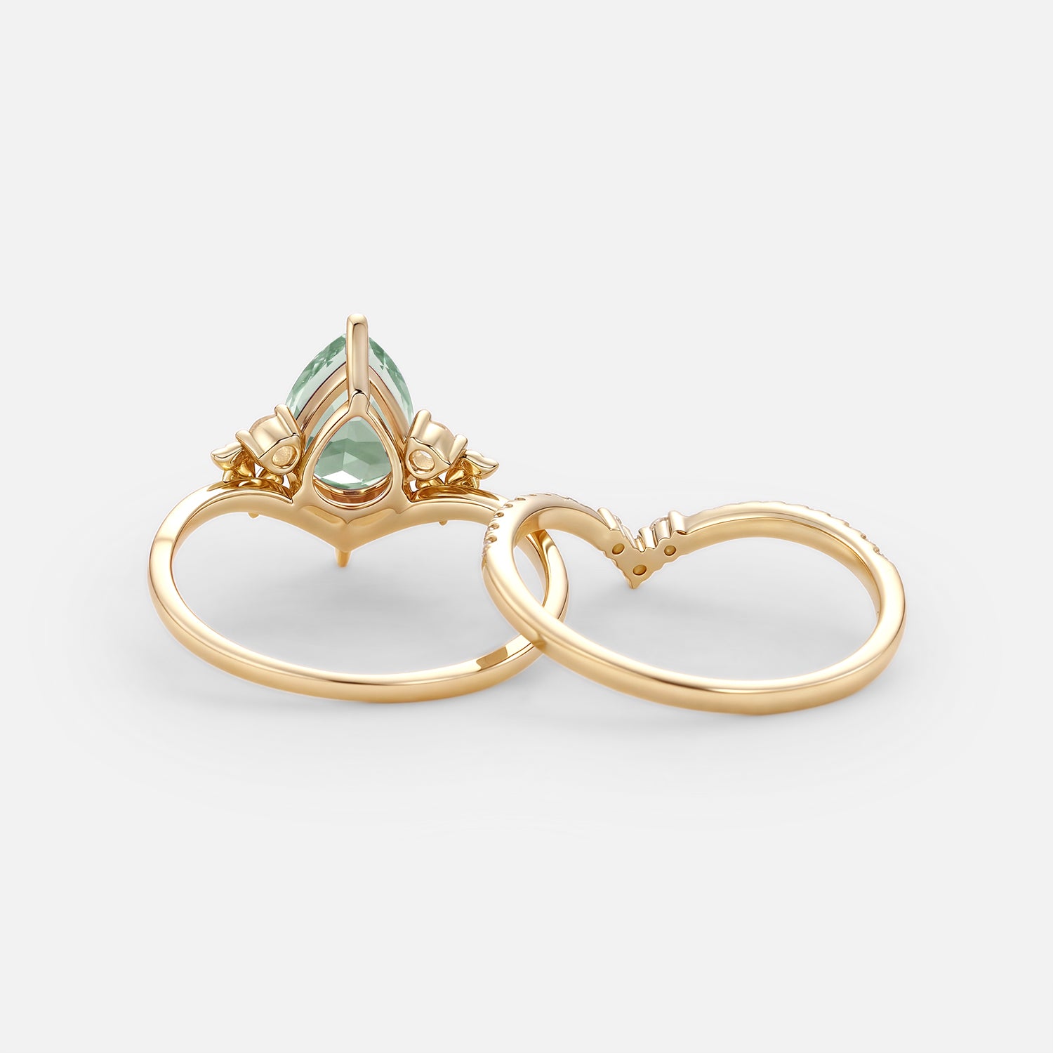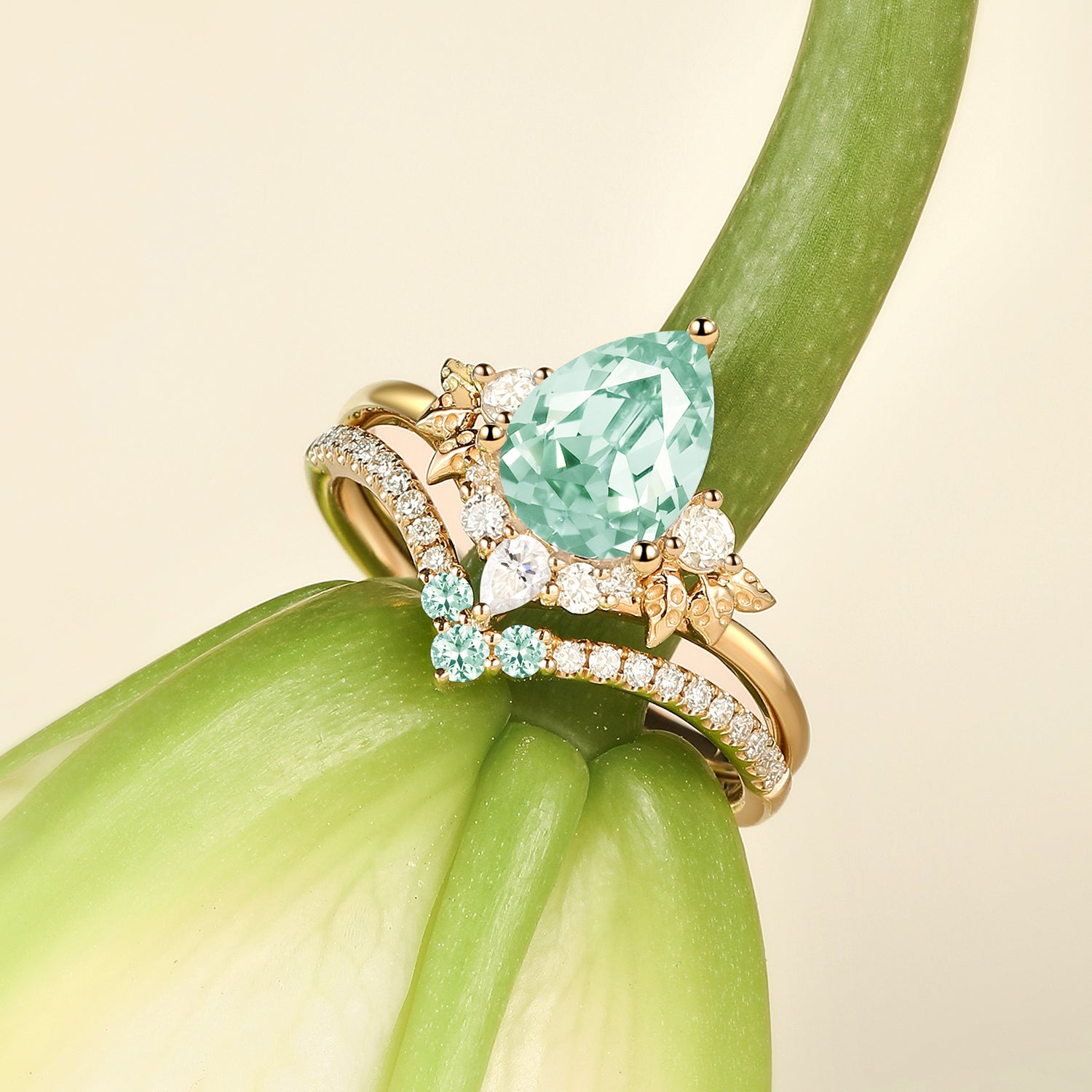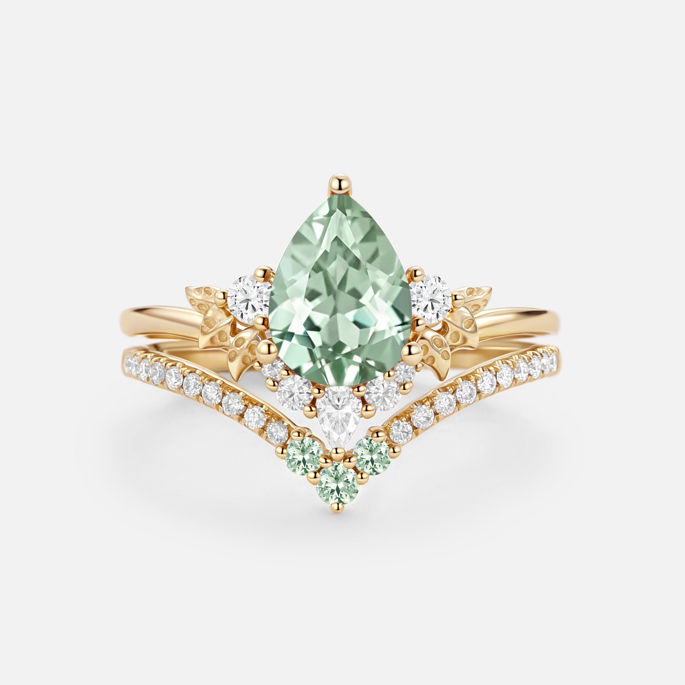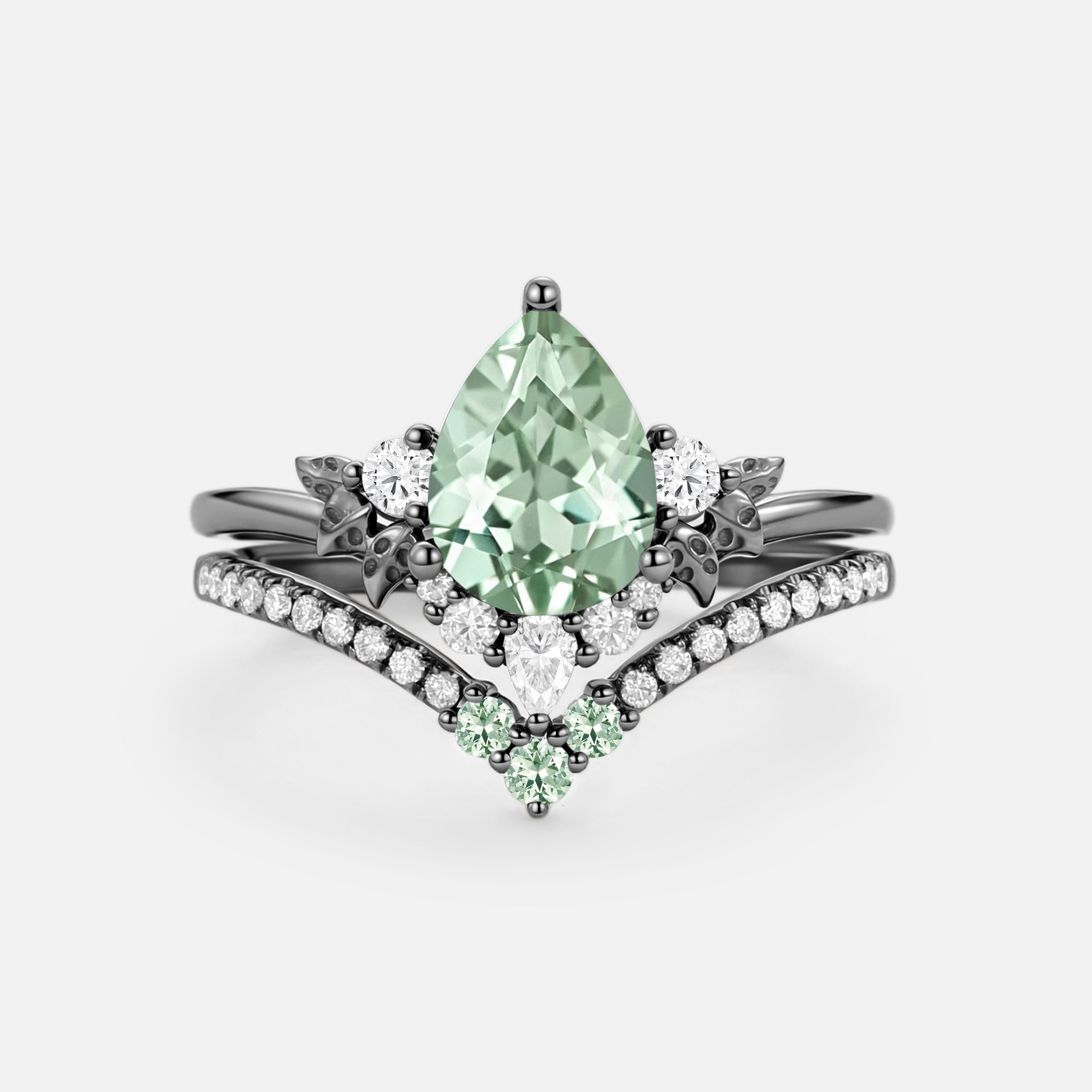Pear Cut Lab Green Sapphire Engagement Ring Sets 2pcs - Mauve