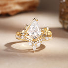 Pear Cut Lab Grown Diamond Leafy Ring Set 2pcs - Twigs