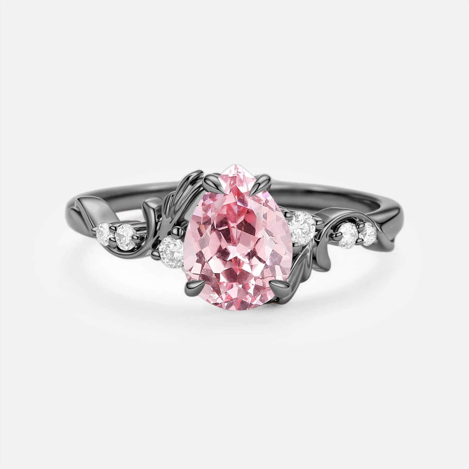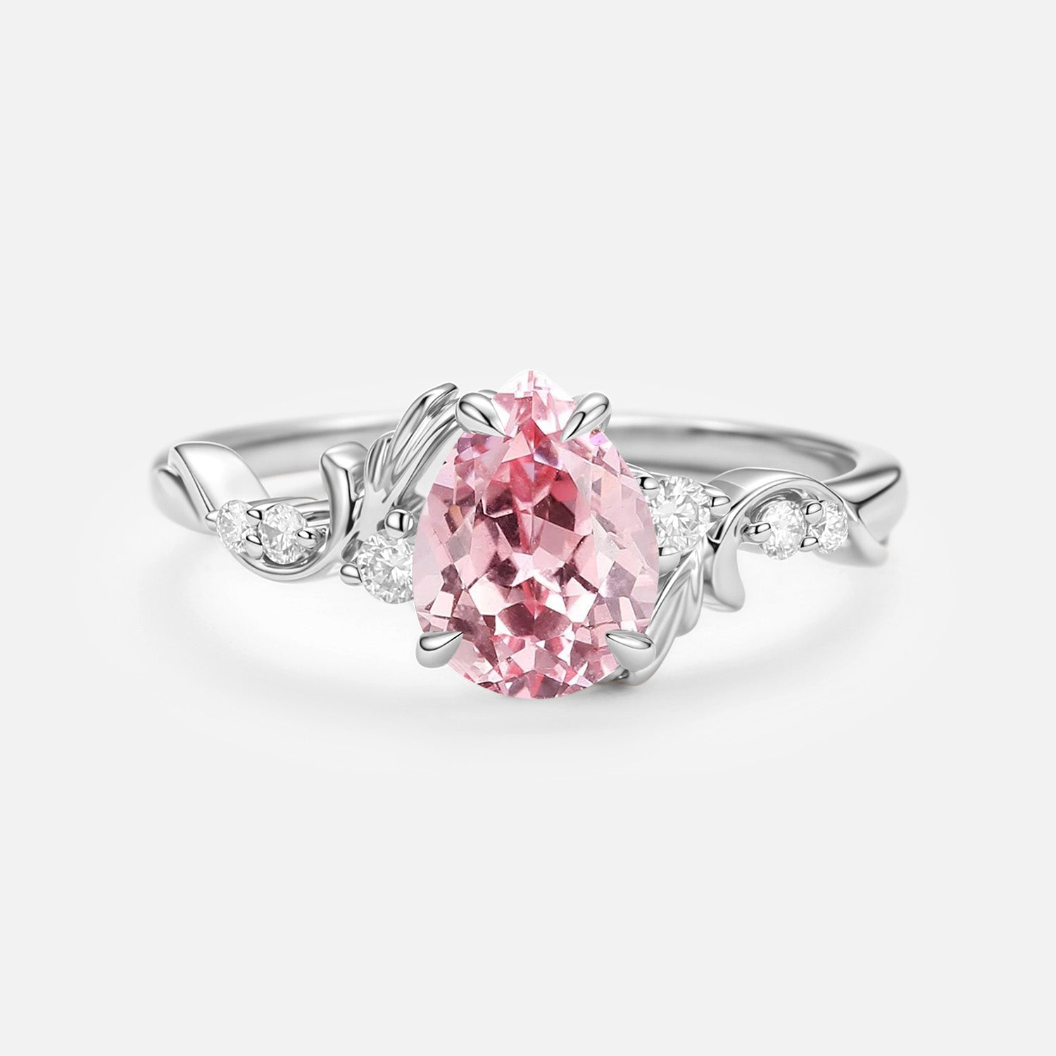 Pear Cut Lab Pink Sapphire Leafy Engagement Ring - Briar