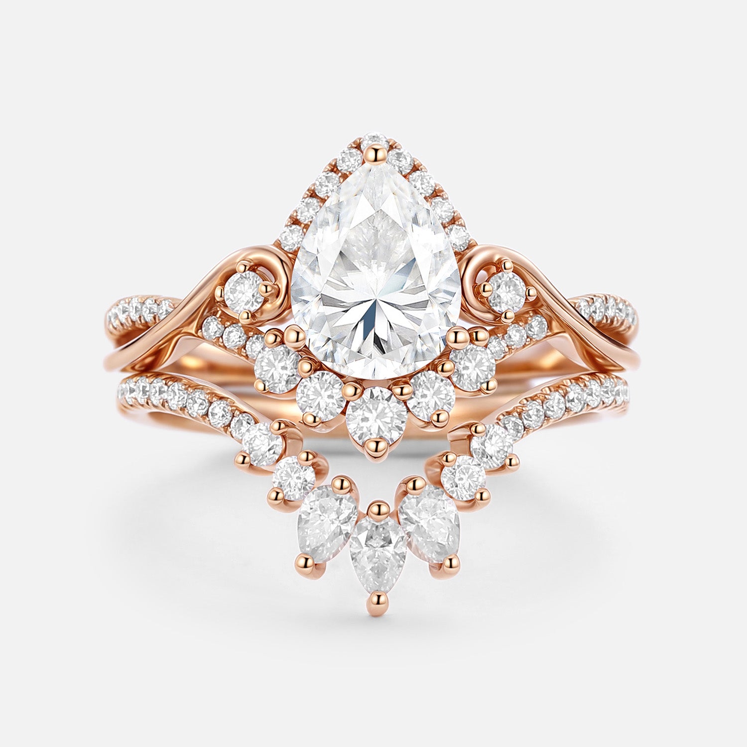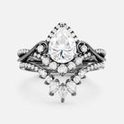 Pear Cut Moissanite Cluster Engagement Ring Set 2pcs