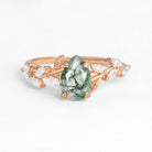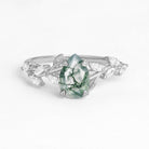 Pear Cut Moss Agate Nature Inspired Engagement Ring