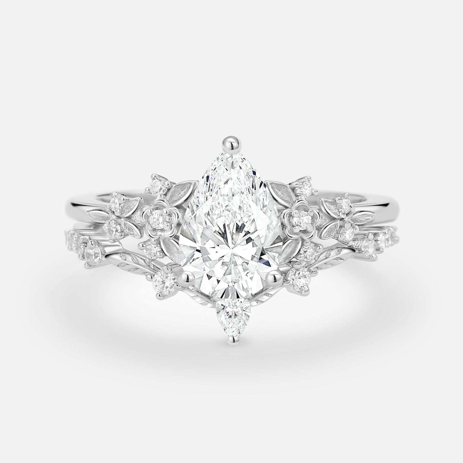 Pear Shaped Lab Grown Diamond Flower Bridal Ring Set 2pcs