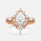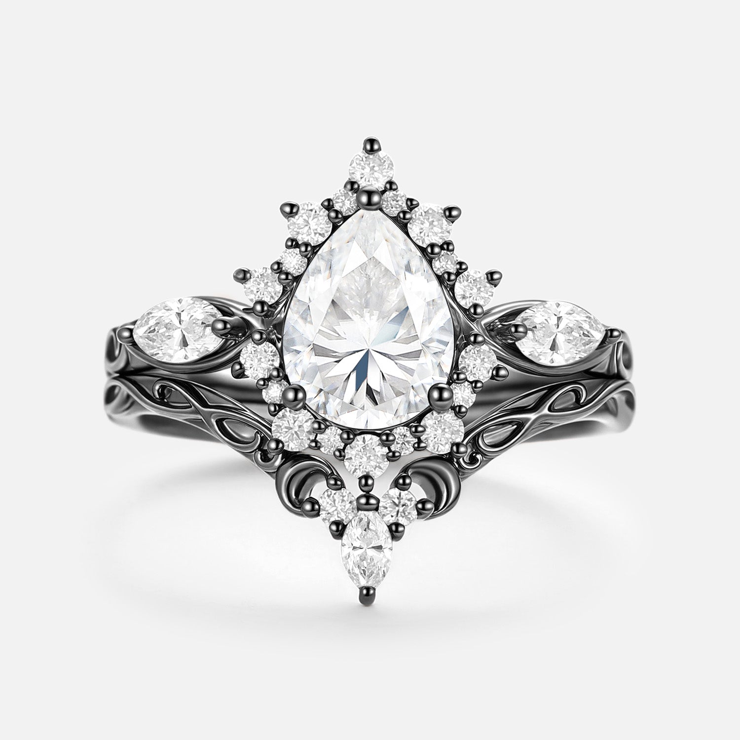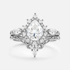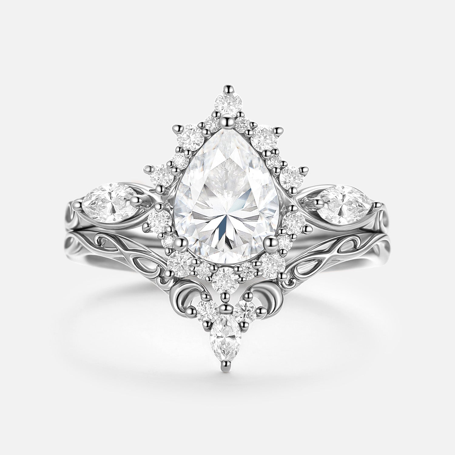 Pear Shaped Moissanite Halo Ring Set 2pcs - Zenn