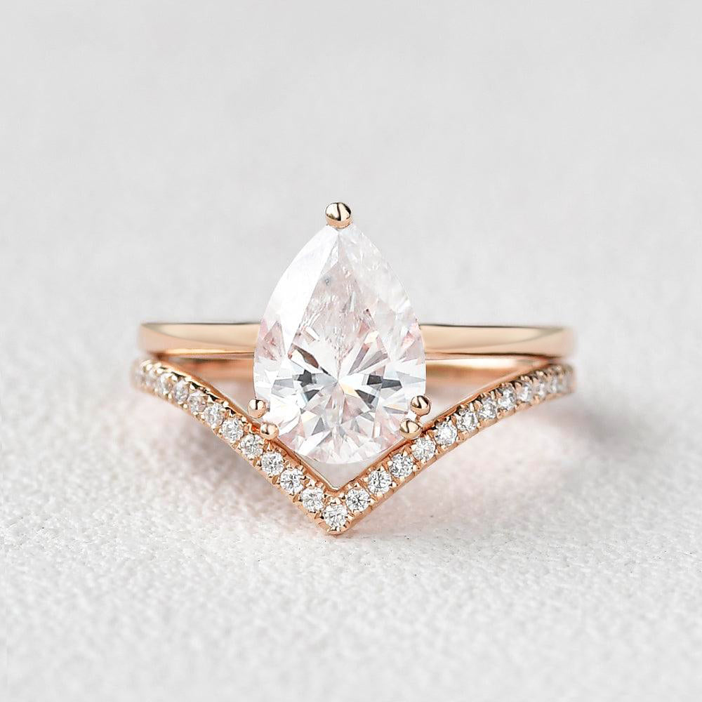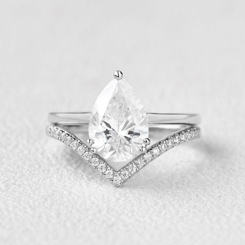 2.0ct Pear Shaped Moissanite Ring Set 2pcs