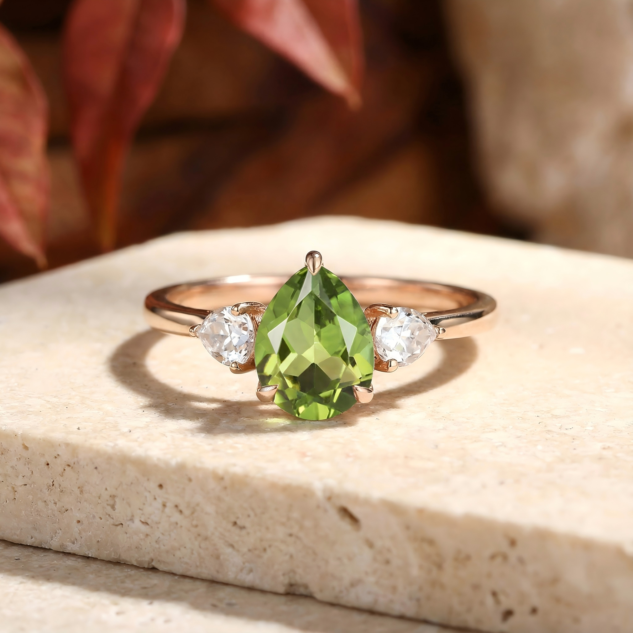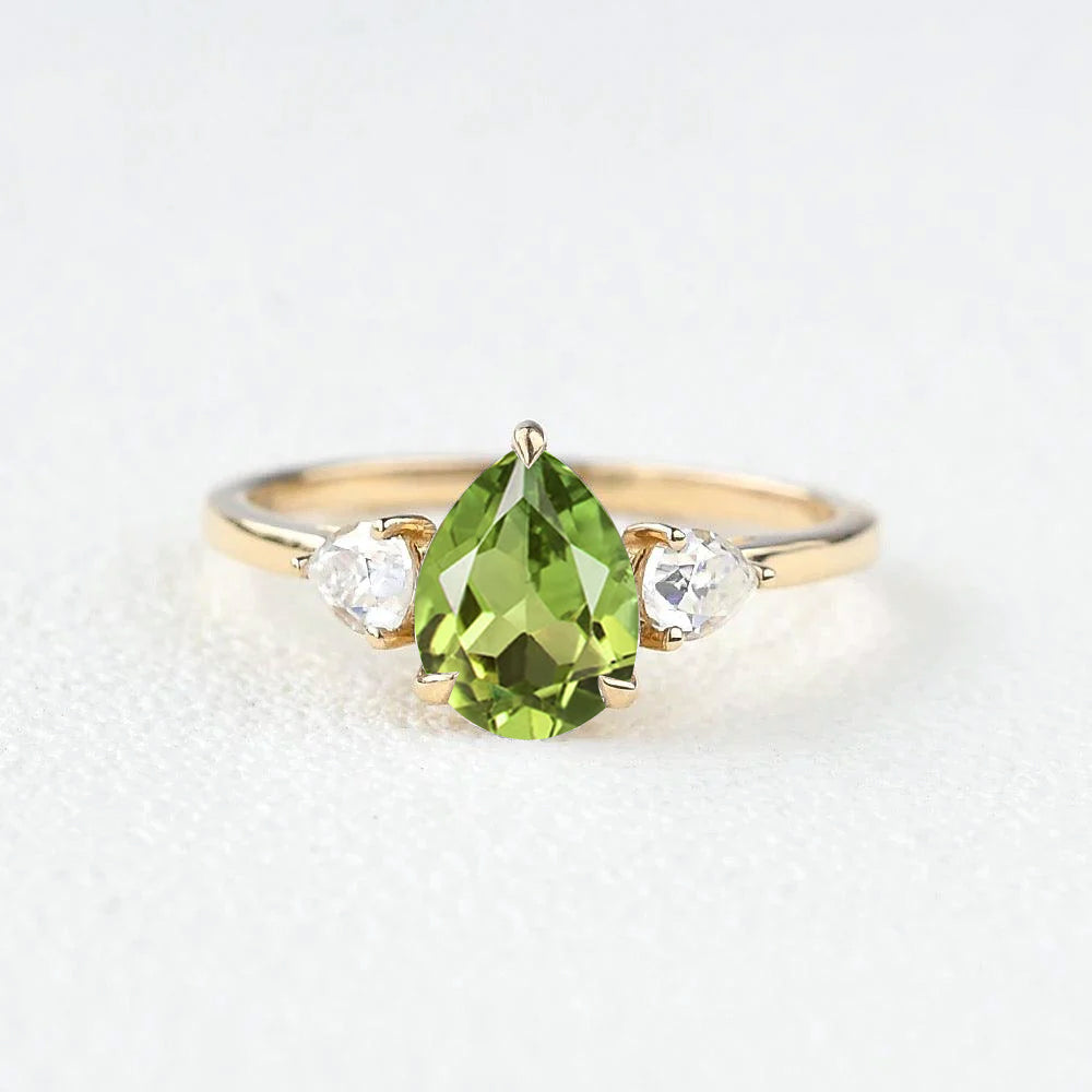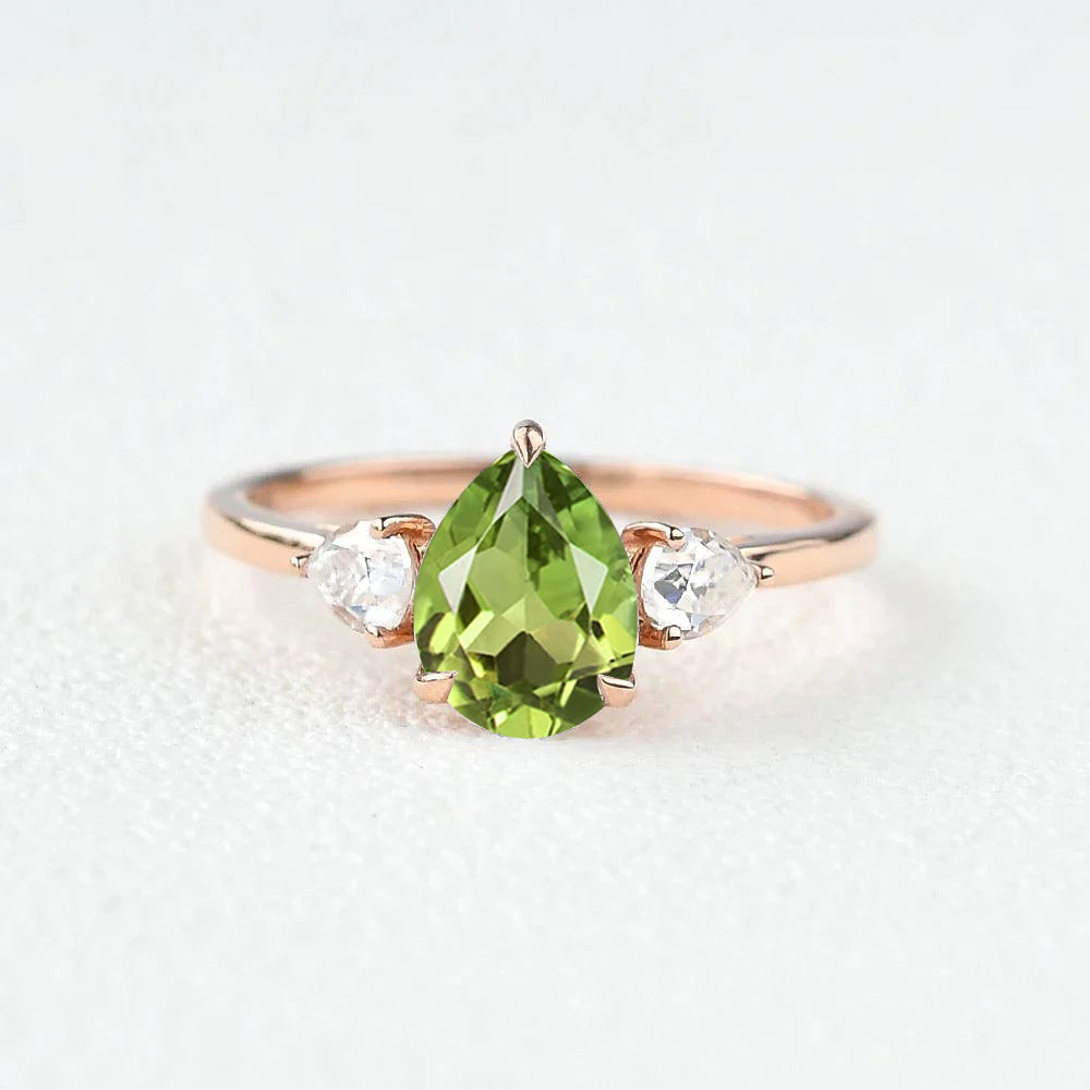 Felicegals Pear Shaped Peridot Engagement Ring Three Stones Rose Gold Ring Antique Wedding Band Women Gift