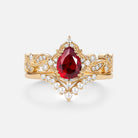Pear Shaped Lab Ruby & Pearl Engagement Ring Set 2pcs - Harper