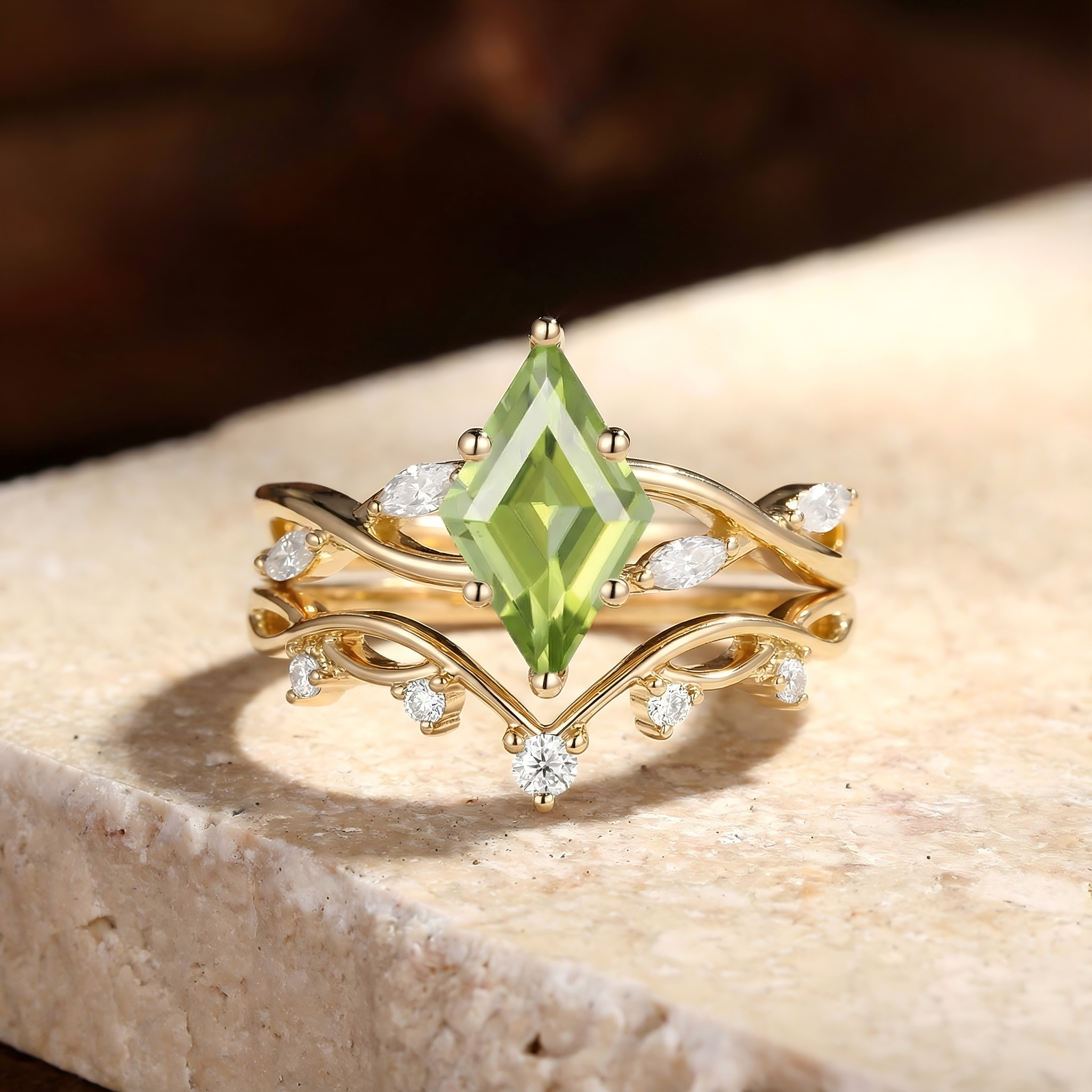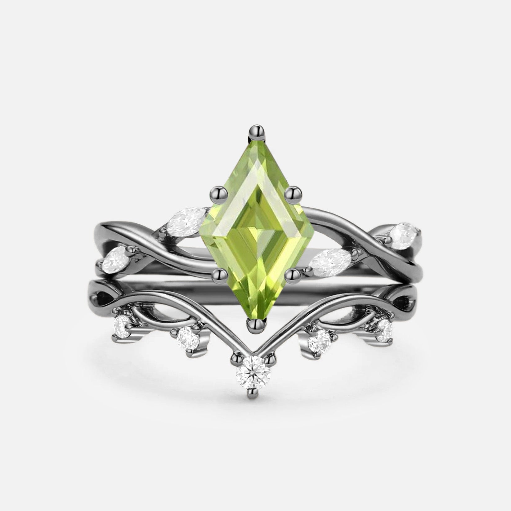 Rhombus Cut Peridot Twist Engagement Ring Set 2pcs - Gladys