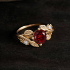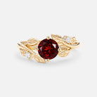 Round Cut Garnet Leafy Engagement Ring - Gardenia