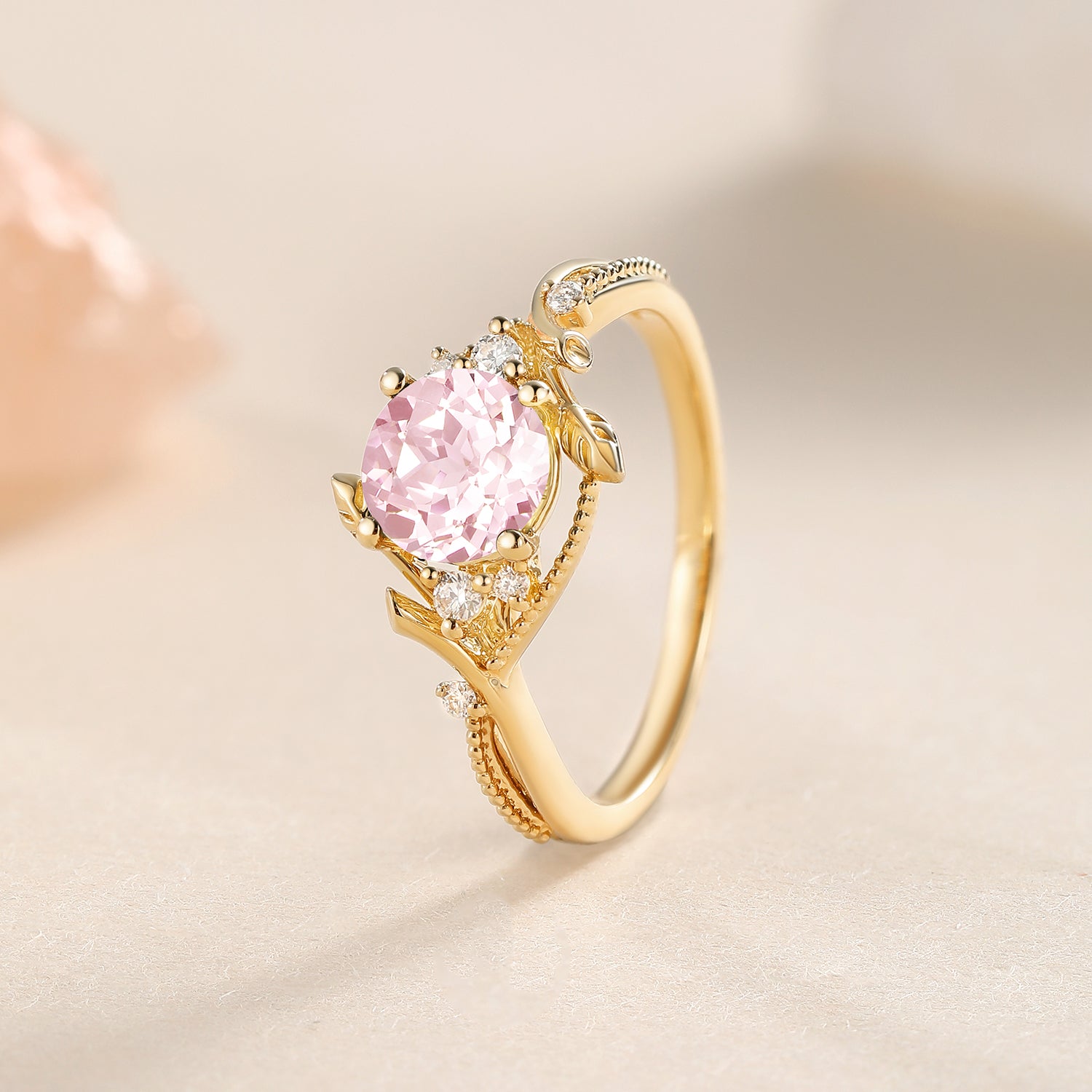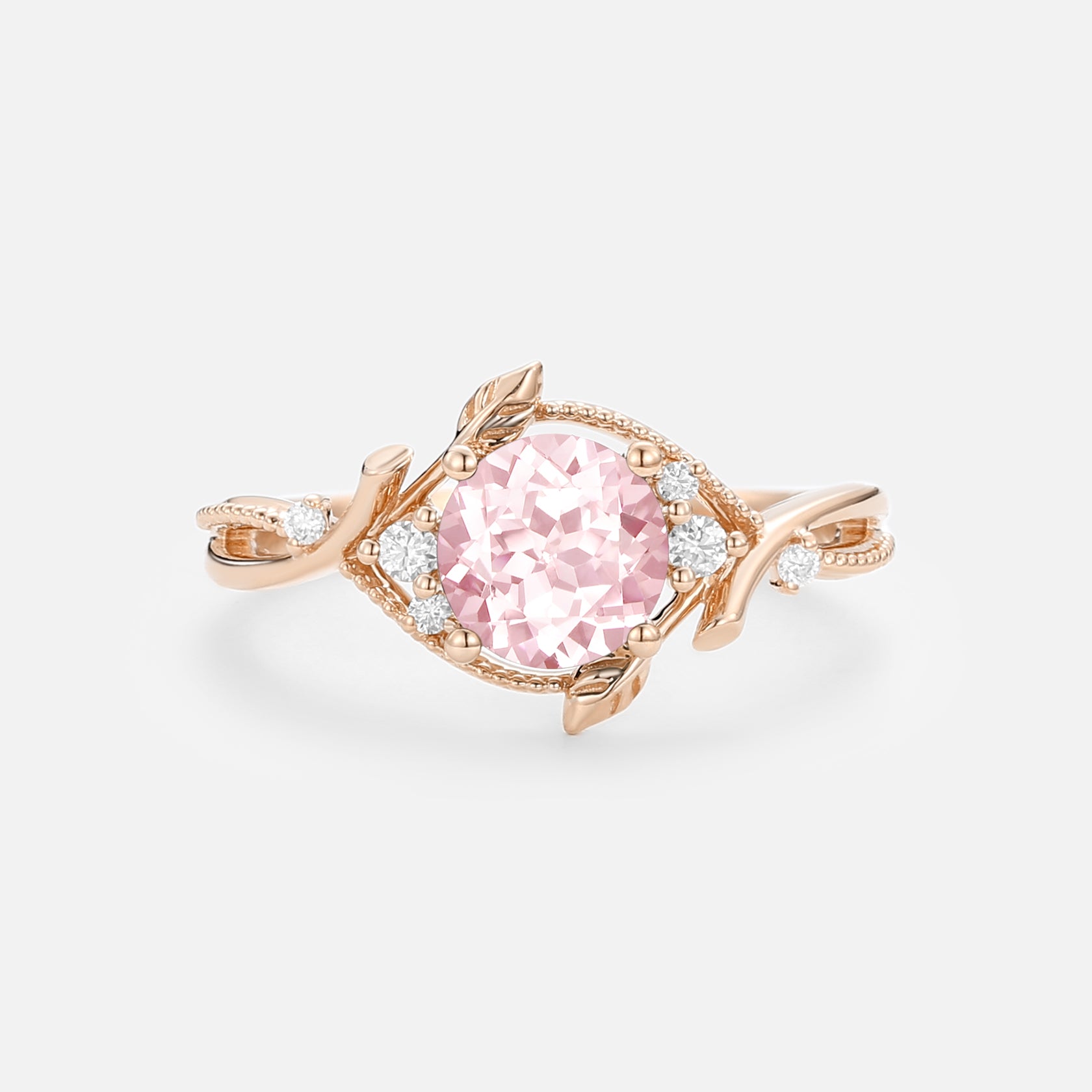 Round Cut Lab Pink Sapphire Engagement Ring - Vyrra