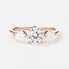 Felicegals 1.0ct Roundness Moissanite Rose Gold Engagement Ring Three Stones Ring Solitaire Women Bridal Anniversary Gift