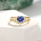 Round Shaped Leafy Cornflower Blue Lab Sapphire Engagement Ring Sets - Sarah