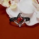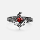 Unique Kite Cut Garnet Leafy Engagement Ring Sets 2pcs - Ivy
