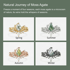 Each unique Moss Agate stone is reminiscent of a misty forest, with green, branch-like inclusions creating captivating visual appeal. Click to see more unique moss agate rings.