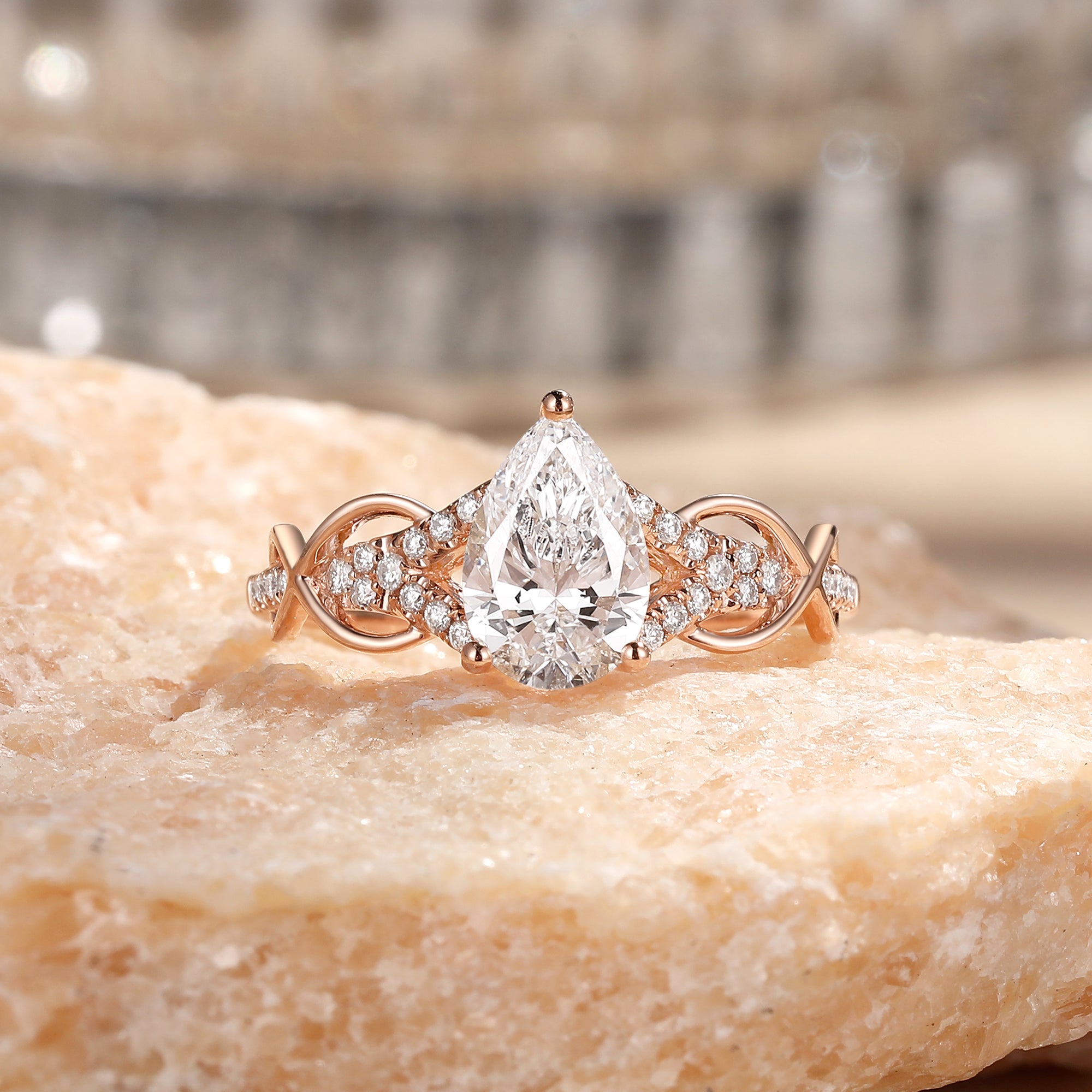 Felicegals Victorian Infinity Pear Shaped Lab Grown Diamond Twisted Shank Ring Lab Diamond Halo Ring Anniversary Gift