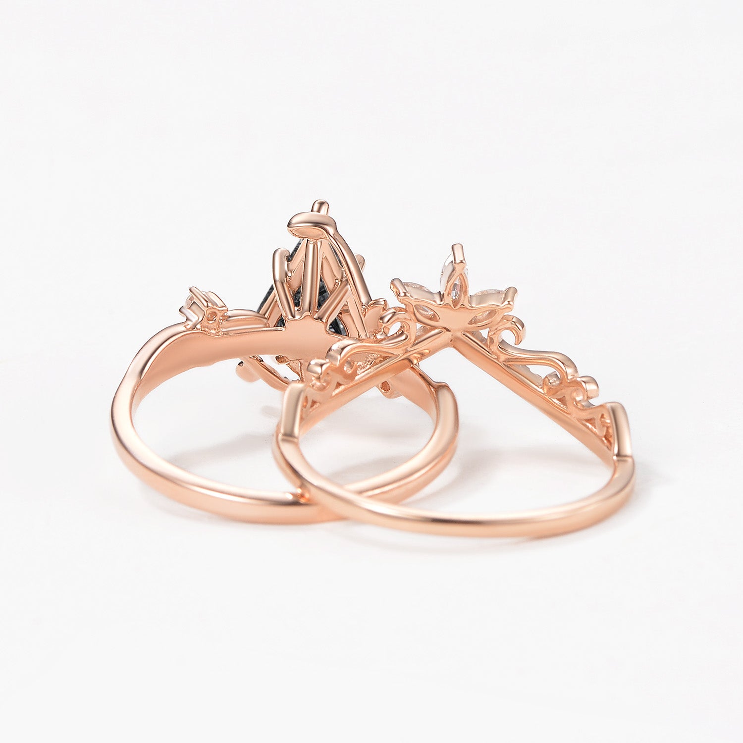 2.0ct Vintage Kite Cut Black Rutilated Quartz Engagement Ring Set 2pcs - Daniella