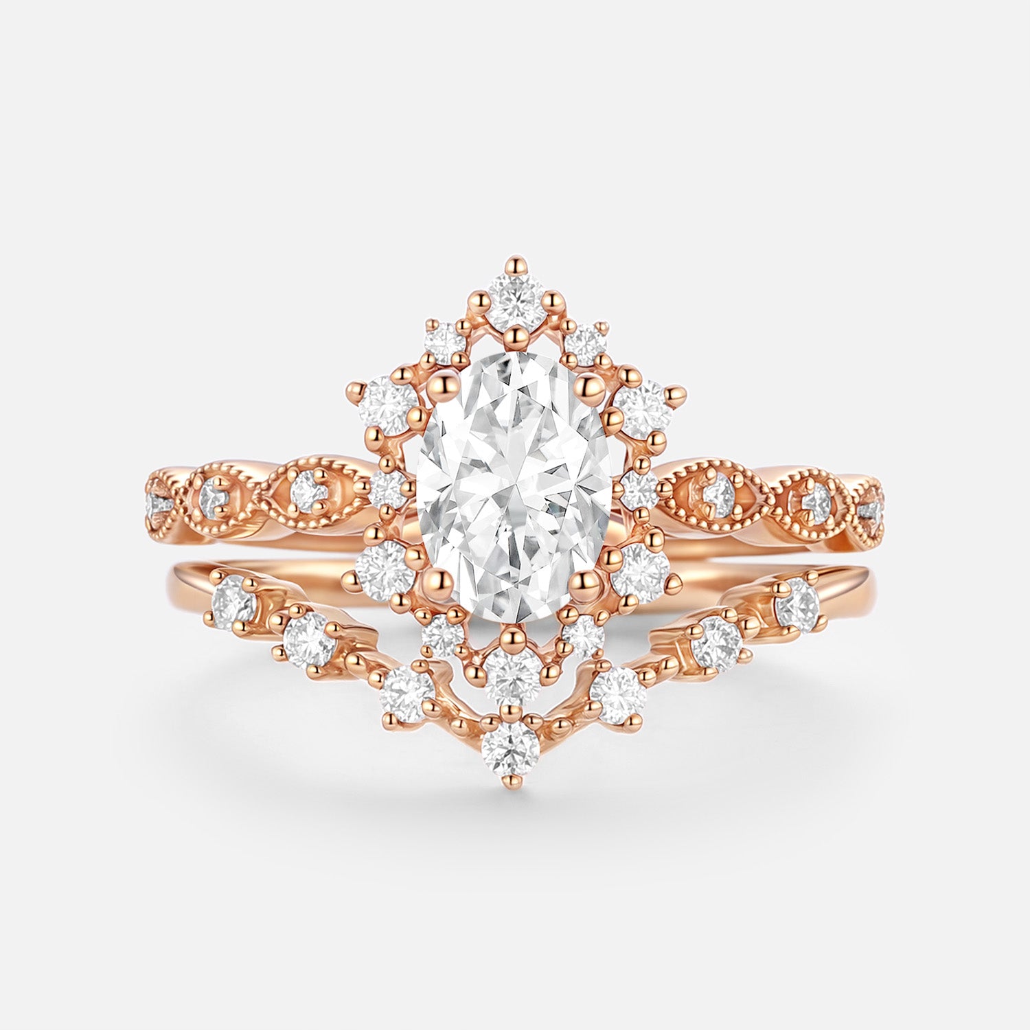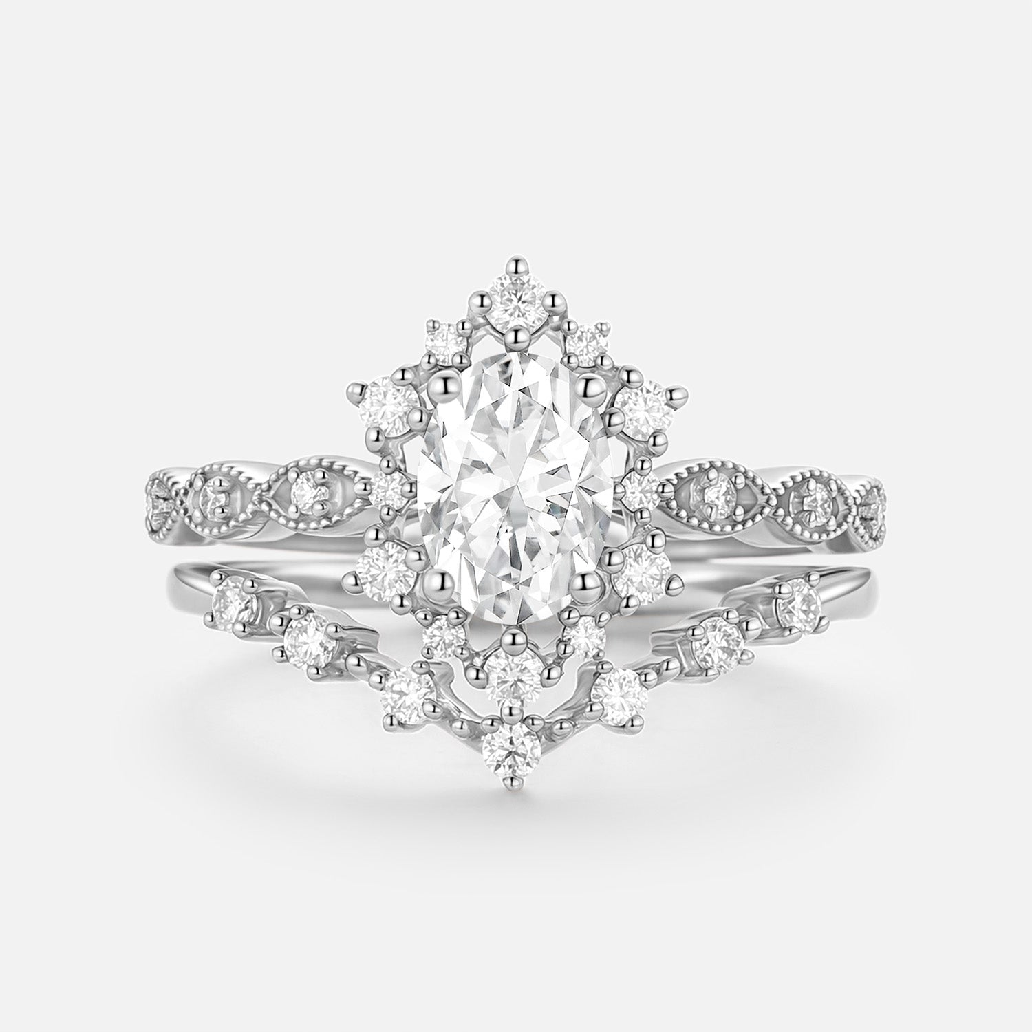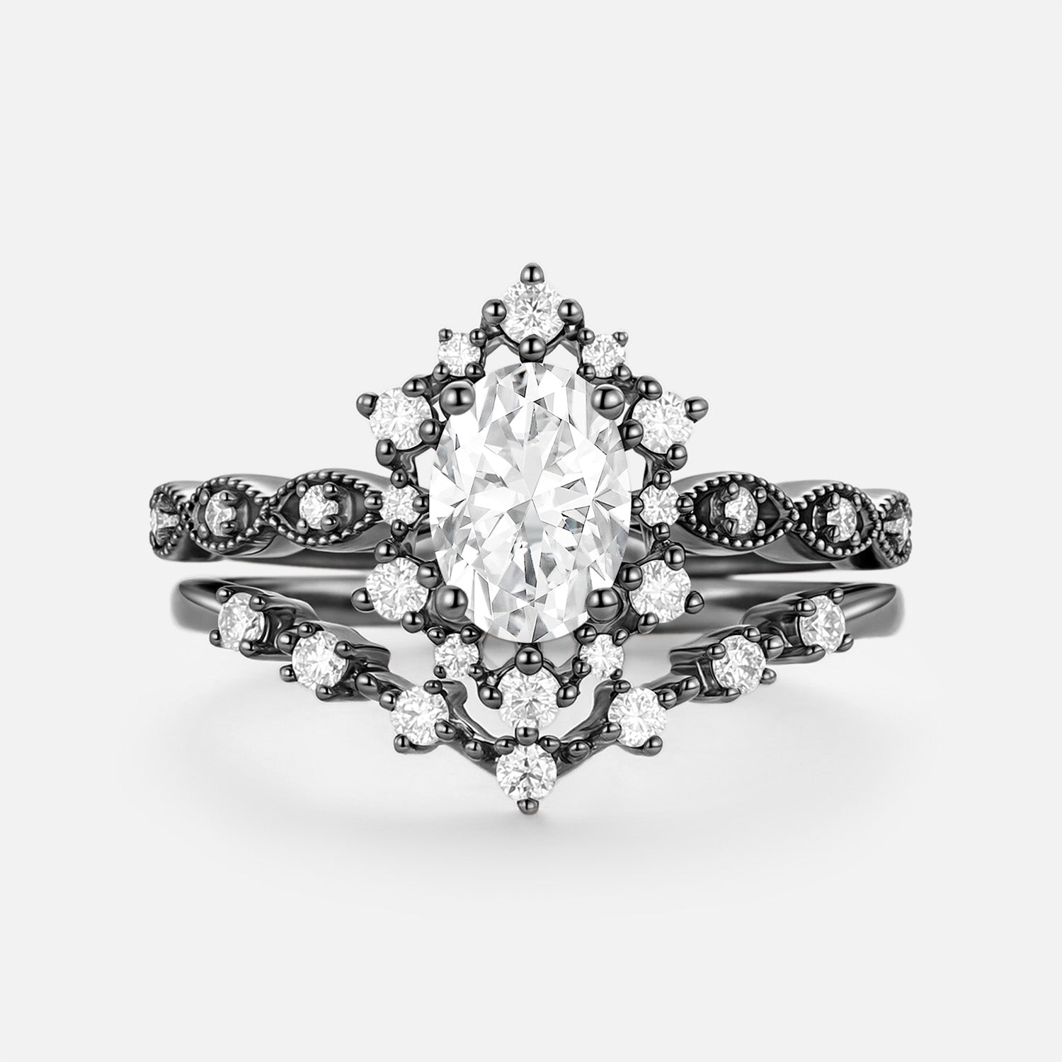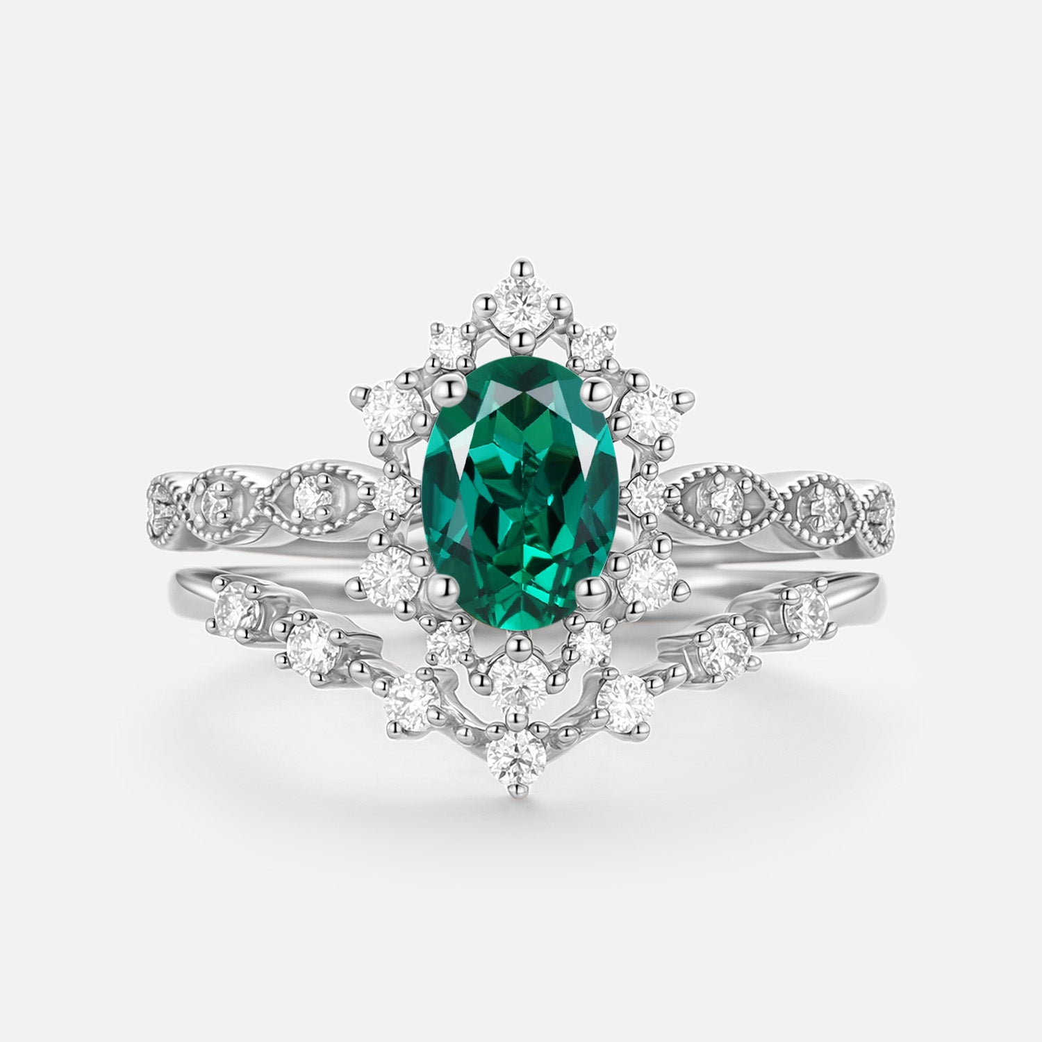 Vintage Oval Cut Lab Emerald Engagement Ring Sets 2pcs