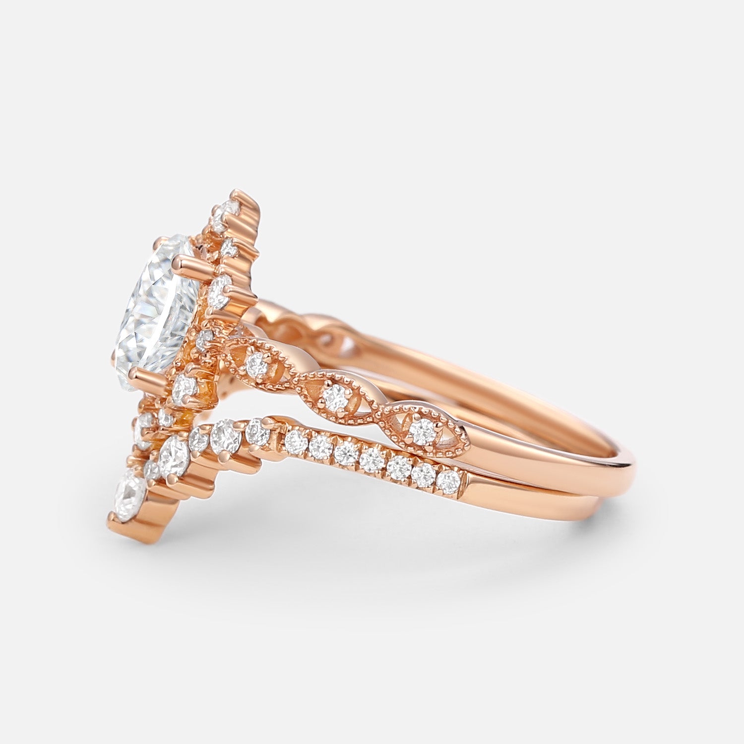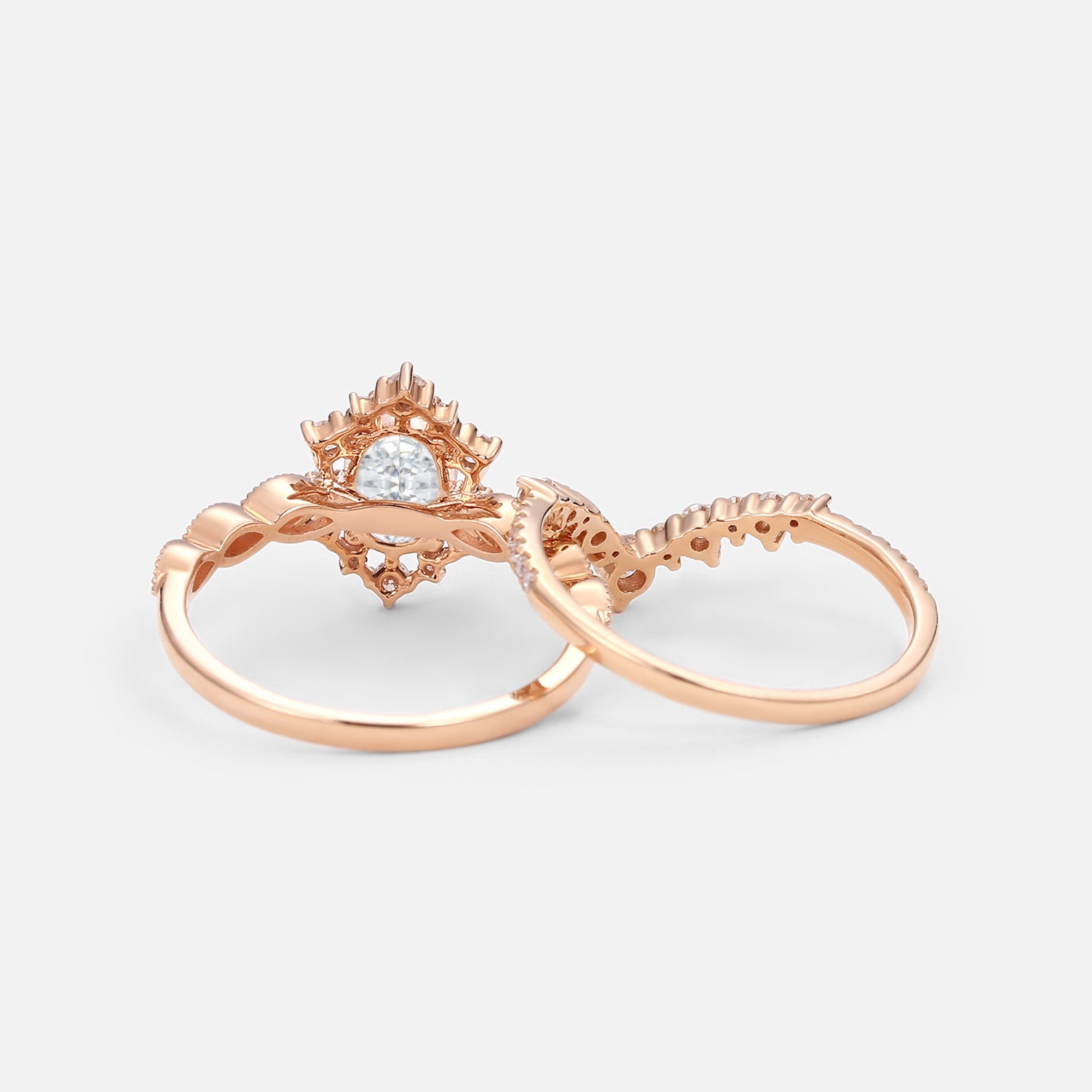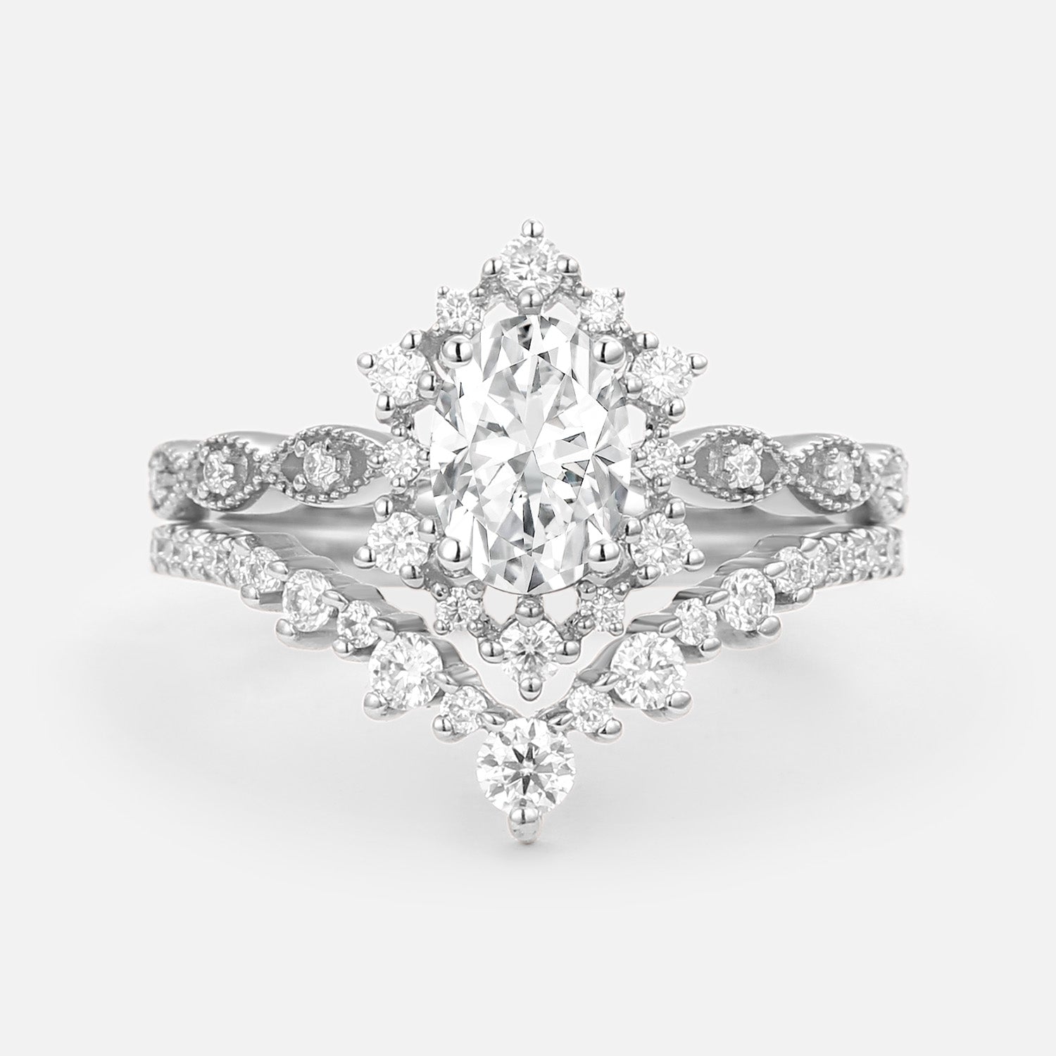 Vintage Oval Moissanite Floral Cluster Ring Set 2pcs